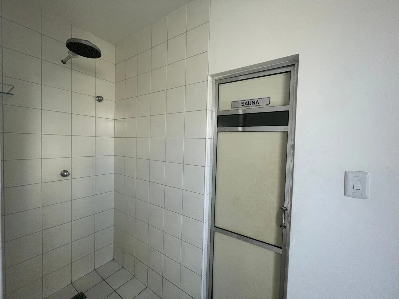Duas vagas de garagem e o condomínio conta com vagas para visitantes, salão de festas, piscina e sauna.