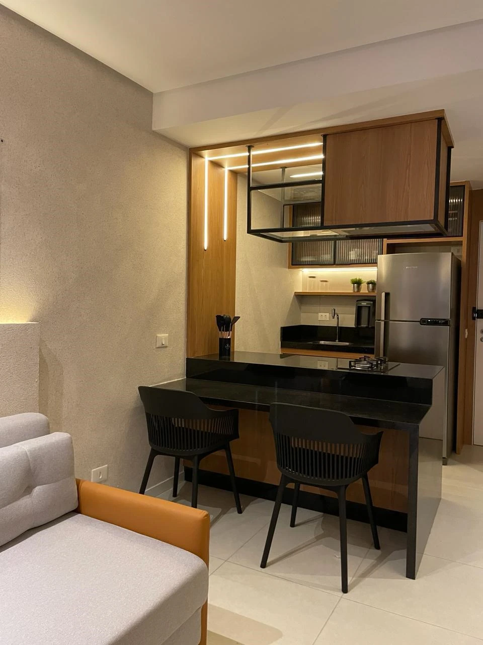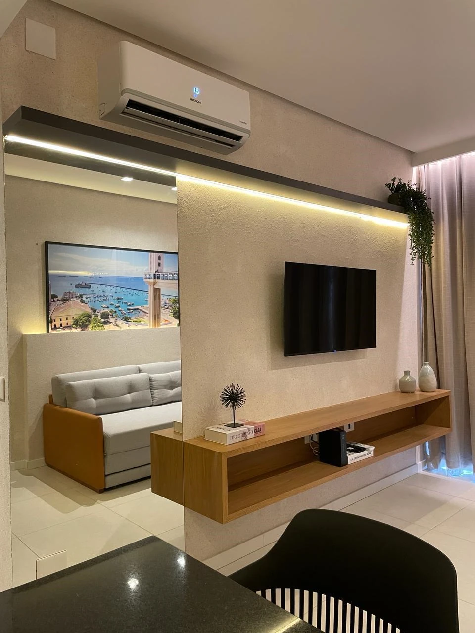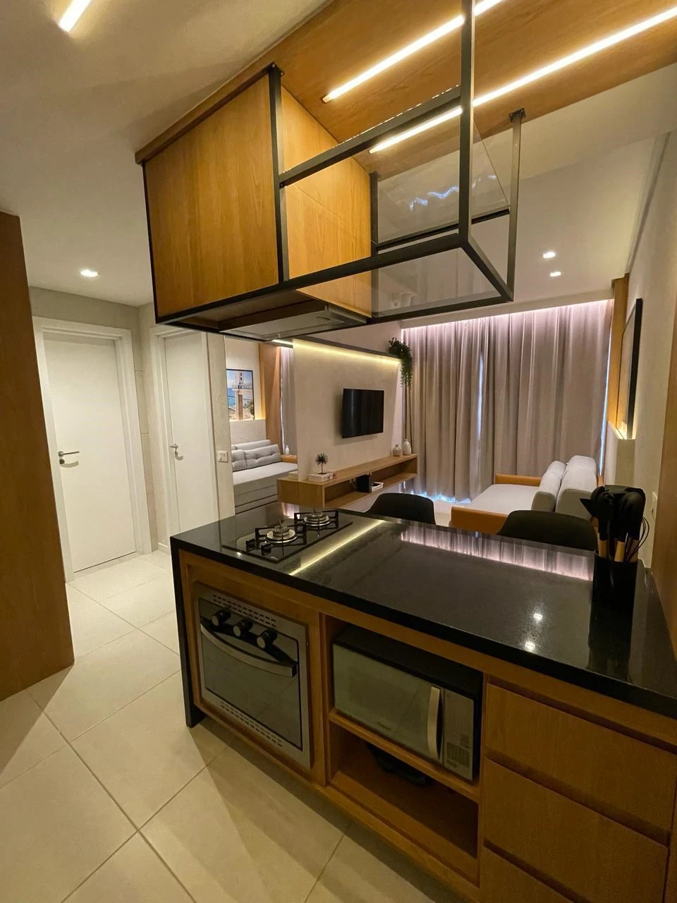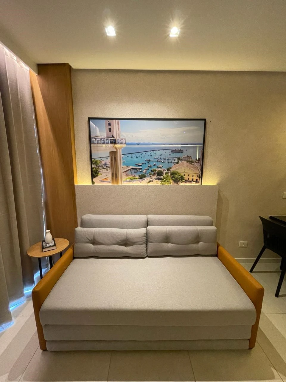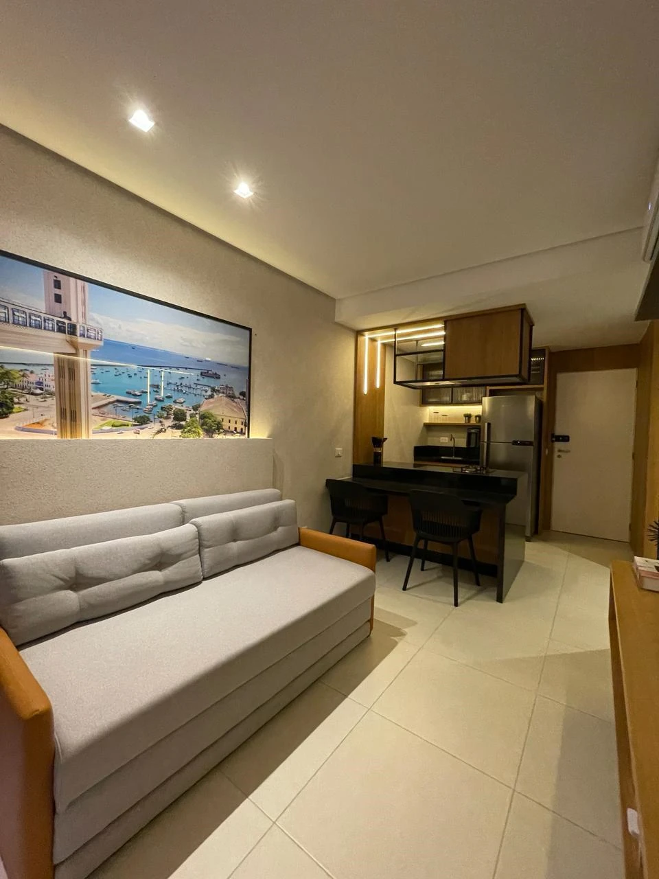 Apartamento quarto e sala à venda no Nau Life Style na Barra com 34 m² , vista mar lateral, decorado com móveis planejados Uma vaga de garagem fixa, Prédio moderno com Rooftop vista panorâmica para o mar, piscina, academia. lavanderia, bicicletário e lounge gourmet. Localizado a 100 metros do Farol da Barra, próximo ao Shopping Barra