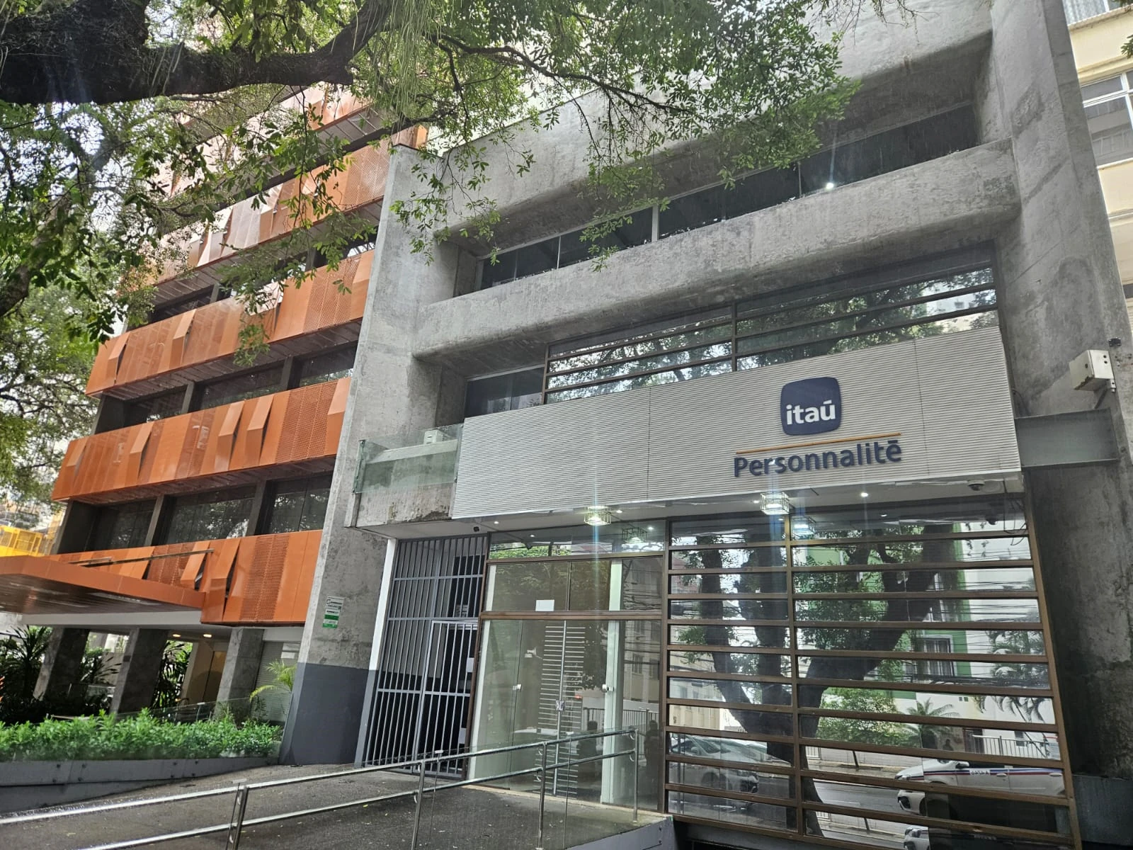Prédio com 03 pavimentos, recepção e elevador e garagem.