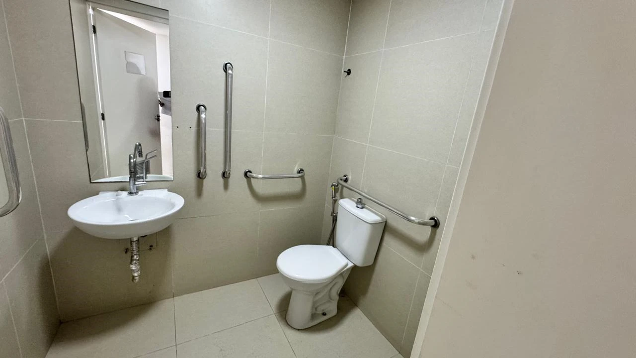 No pavimento térreo além de 2 recepções e uma ampla sala de espera, 4 salas pequenas com lavatório e 1 sala com banheiro e lavatório, depósito, 2 sanitários PNL, lavanderia, copa, sala CPD.