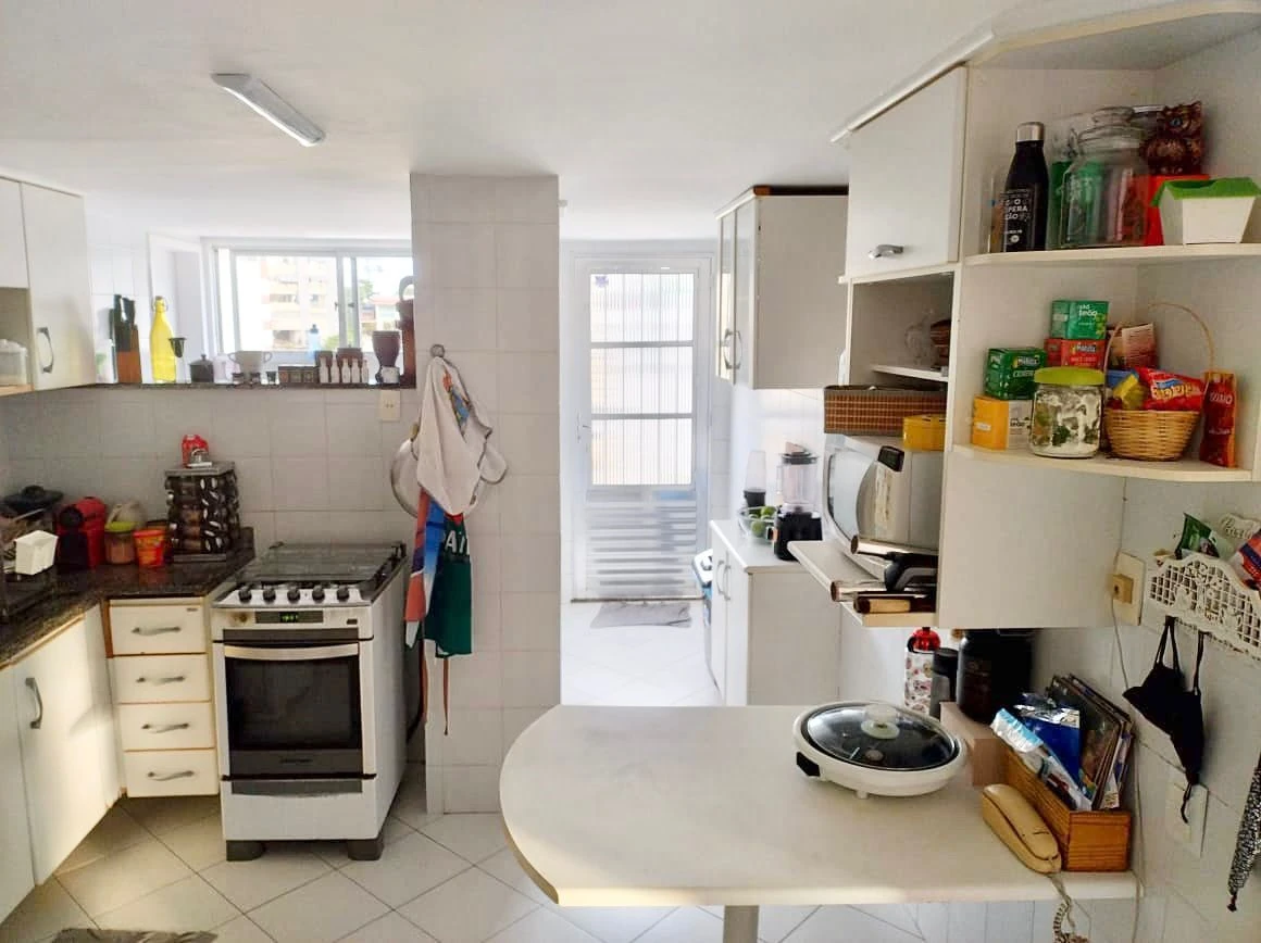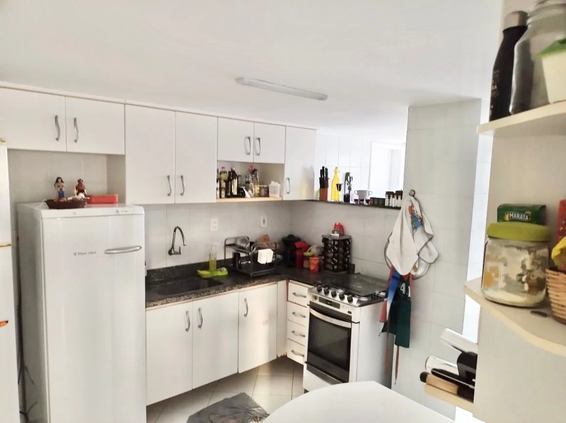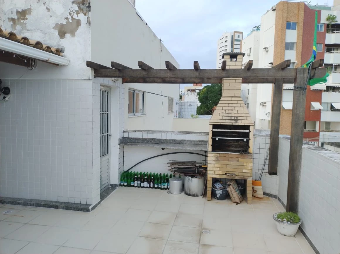 Apartamento cobertura à venda no Rio Vermelho, 155m². São três quartos, sendo duas suítes com closet, sala, cozinha, área de serviço, banheiro social e de serviço. Área descoberta com churrasqueira.