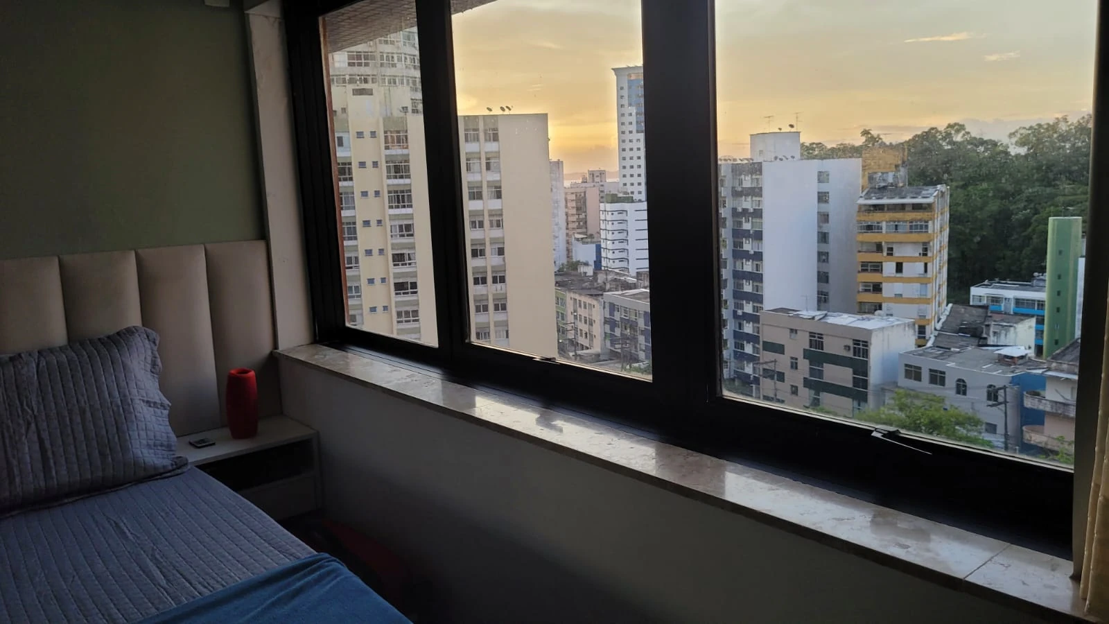 Condomínio com serviço de arrumação diária, rooftop com vista mar, salão de festas, academia e portaria 24h.