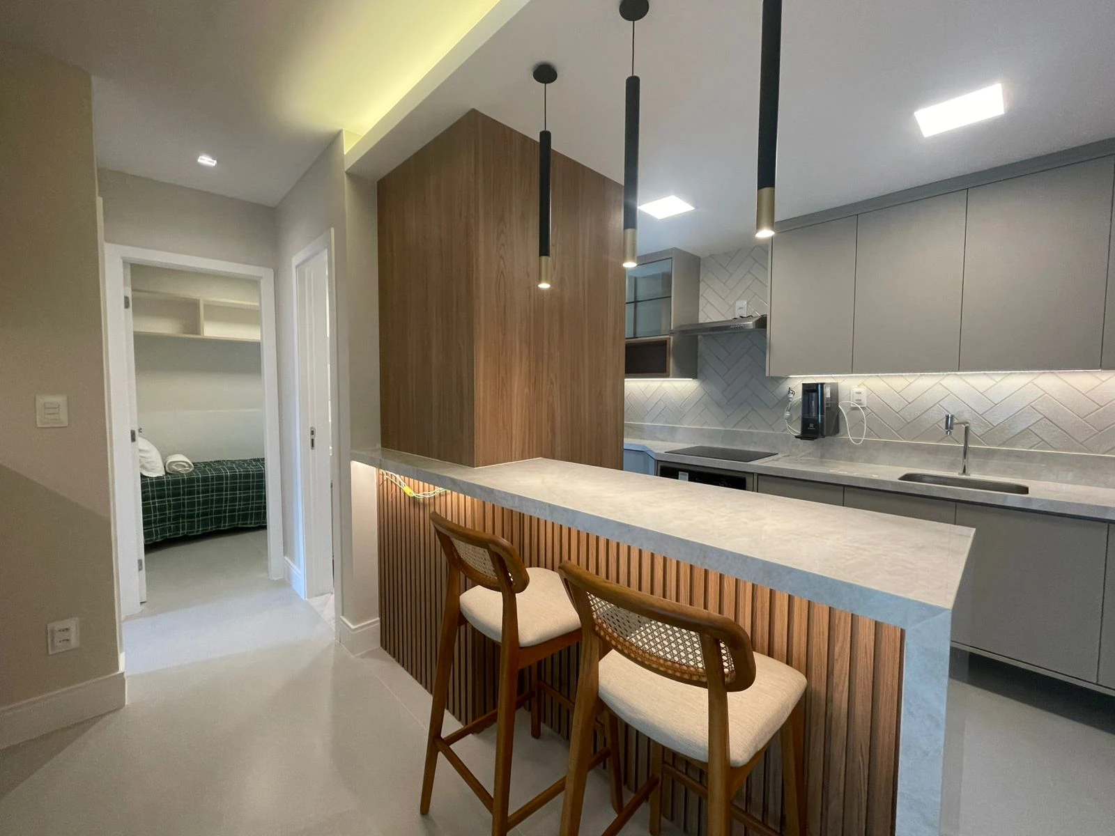 Apartamento dois quartos a venda na Graça, 67 m². Finamente mobiliado, varanda integrada a sala, 1 suíte, 1 quarto com banheiro, cozinha americana e área de serviço.