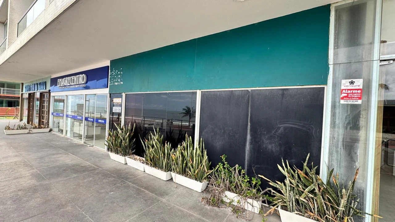 Loja à venda na orla da Barra com 431m², sendo 100m² de varanda. Amplos salões e três banheiros