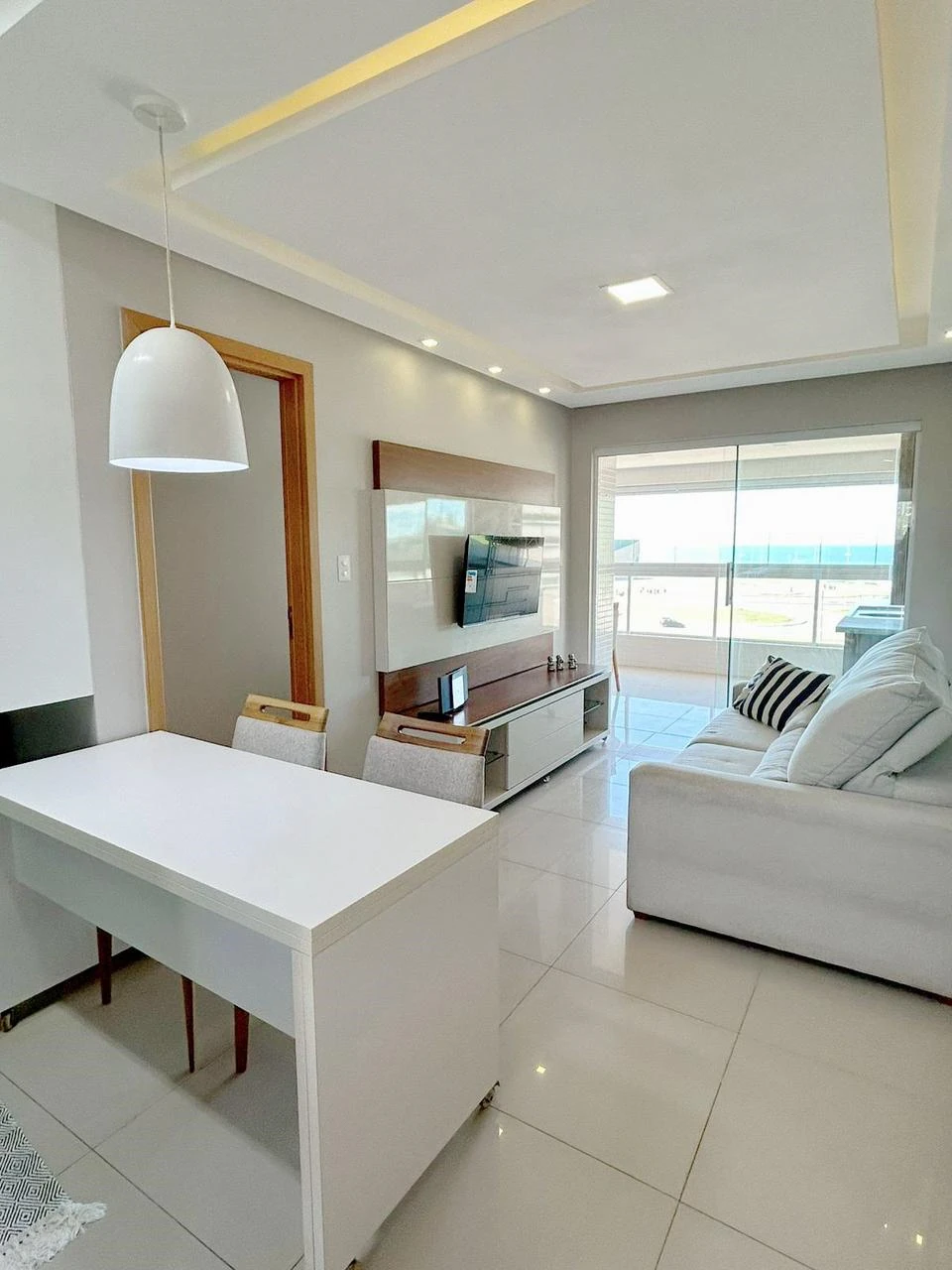 Apartamento quarto e sala à venda em Armação. Com 45m², composto de sala, varanda gourmet com vista mar, suite, cozinha e área de serviço.