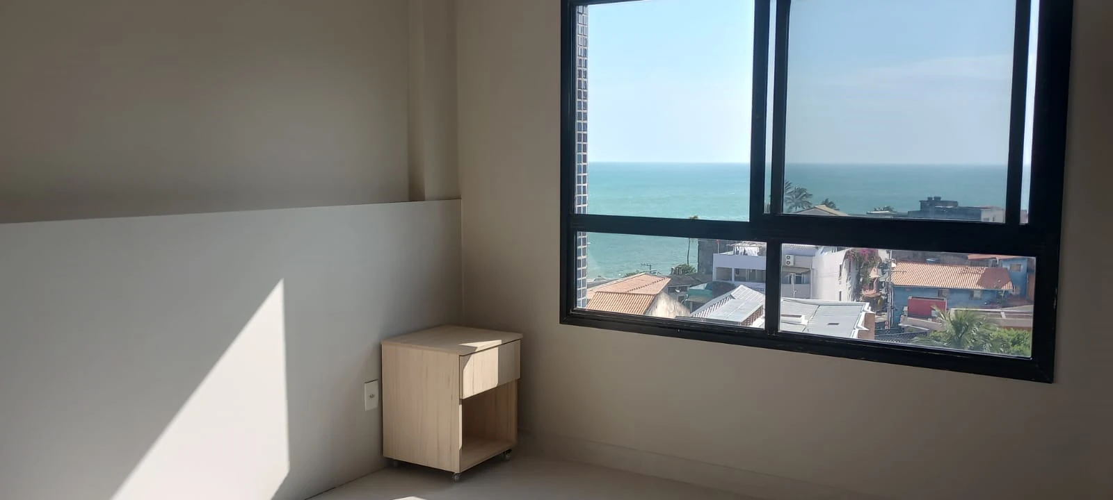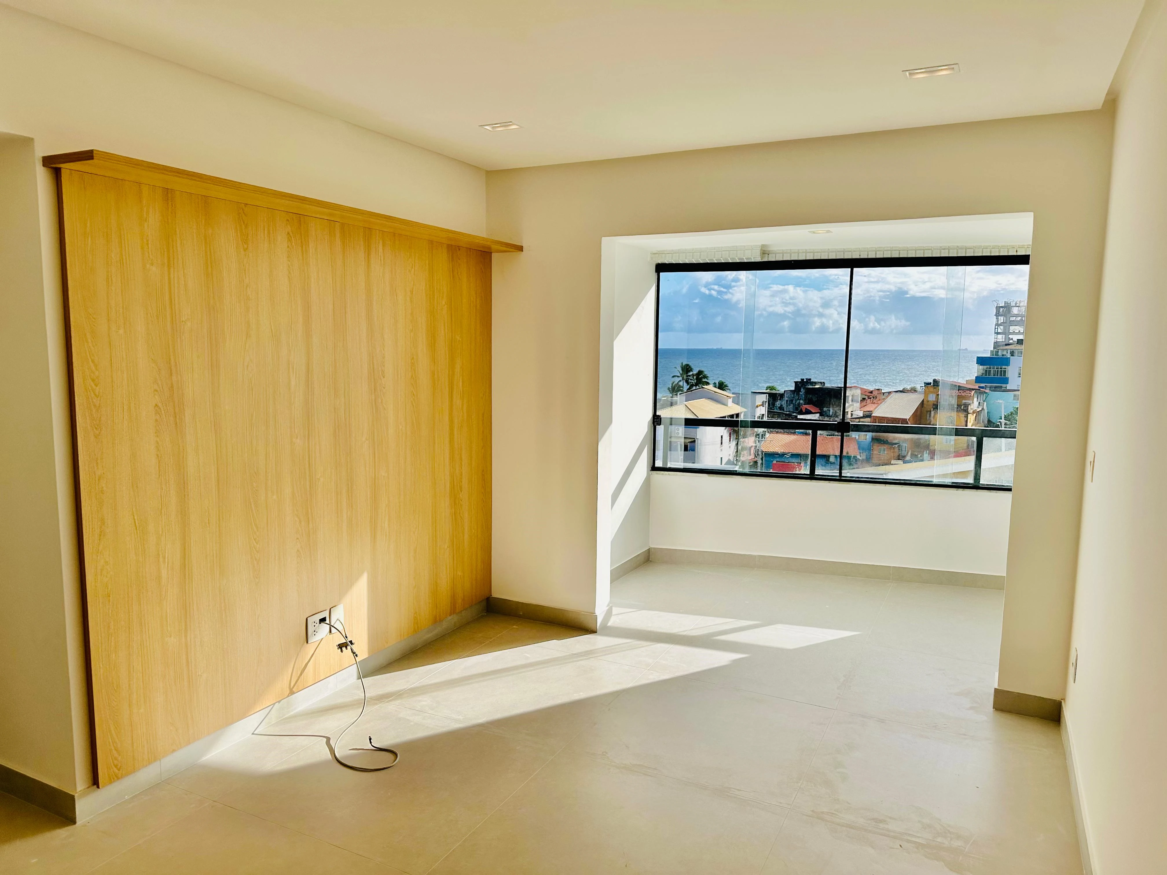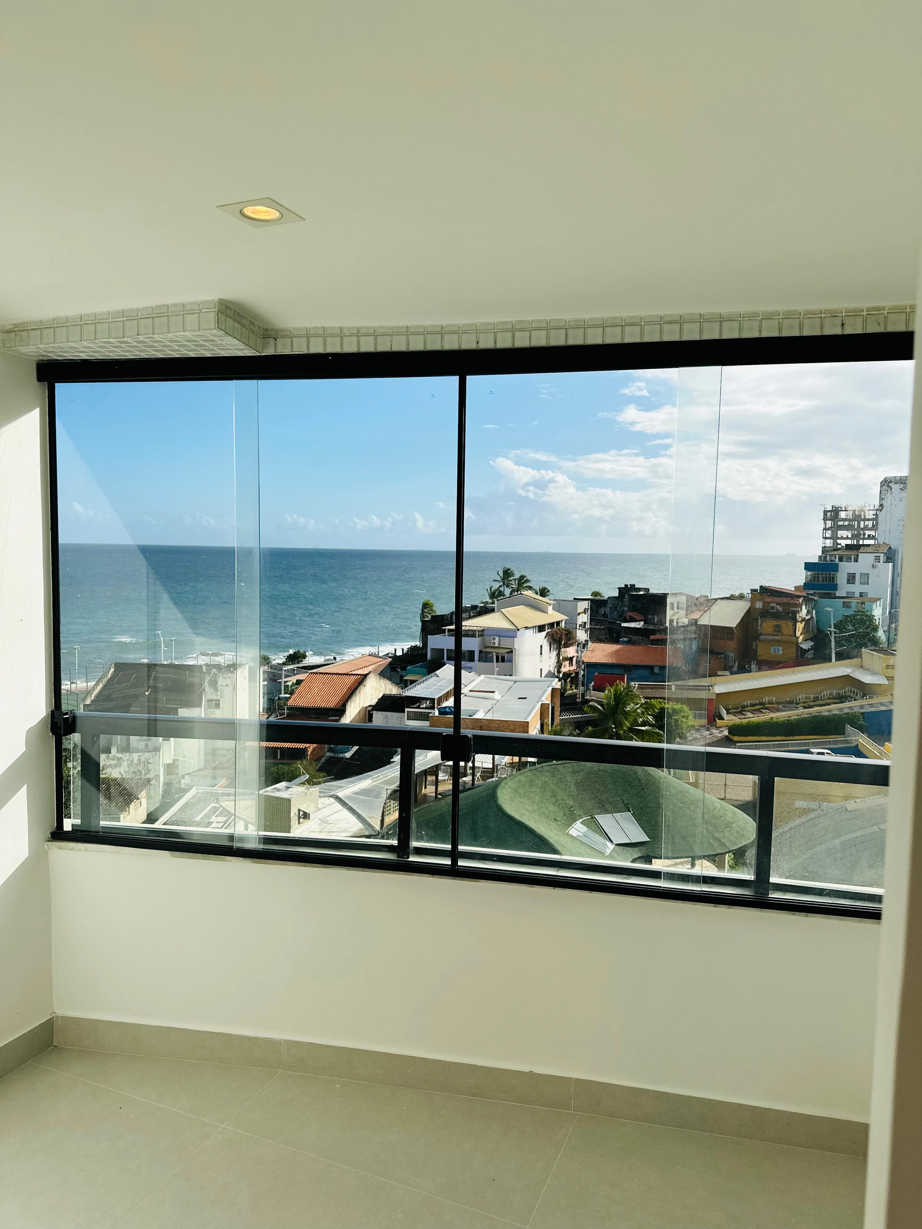 Apartamento dois quartos à venda no Rio Vermelho. Com 64 m², vista mar frontal, com uma suíte e um quarto com banheiro social, sala com cozinha americana. Armários em todos os ambientes.