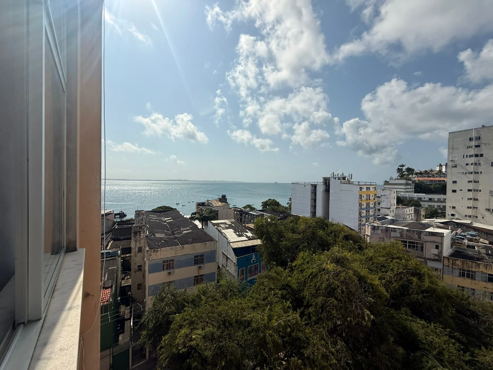 Apartamento três quartos à venda na Barra, com vista mar, 130m², composto de sala, 1 suíte, 2 quartos com banheiro social, cozinha e área de serviço. Prédio com interfone, elevador e playground. Ótima localização, próximo a Praia do Porto da Barra e ao circuito do carnaval.