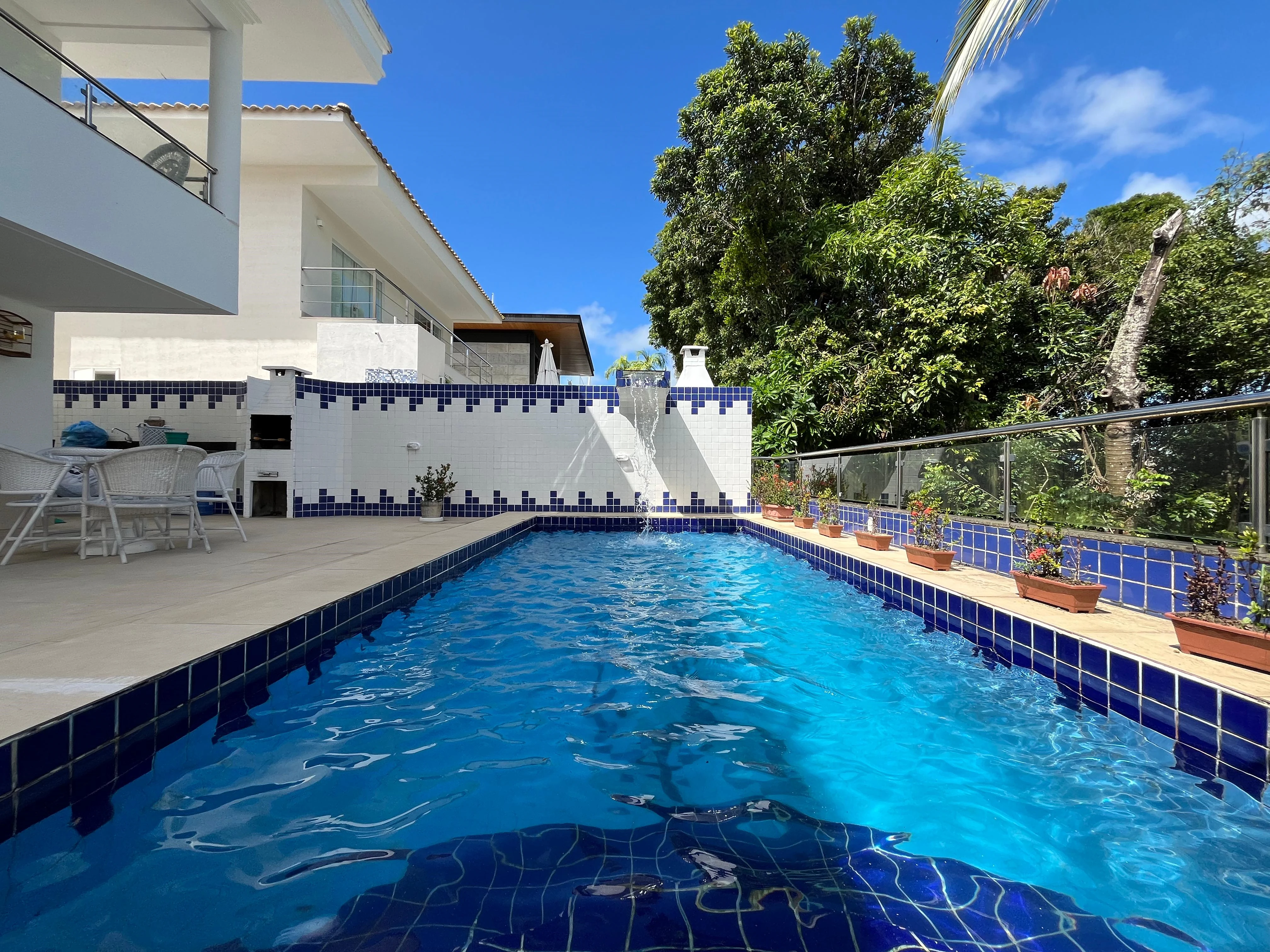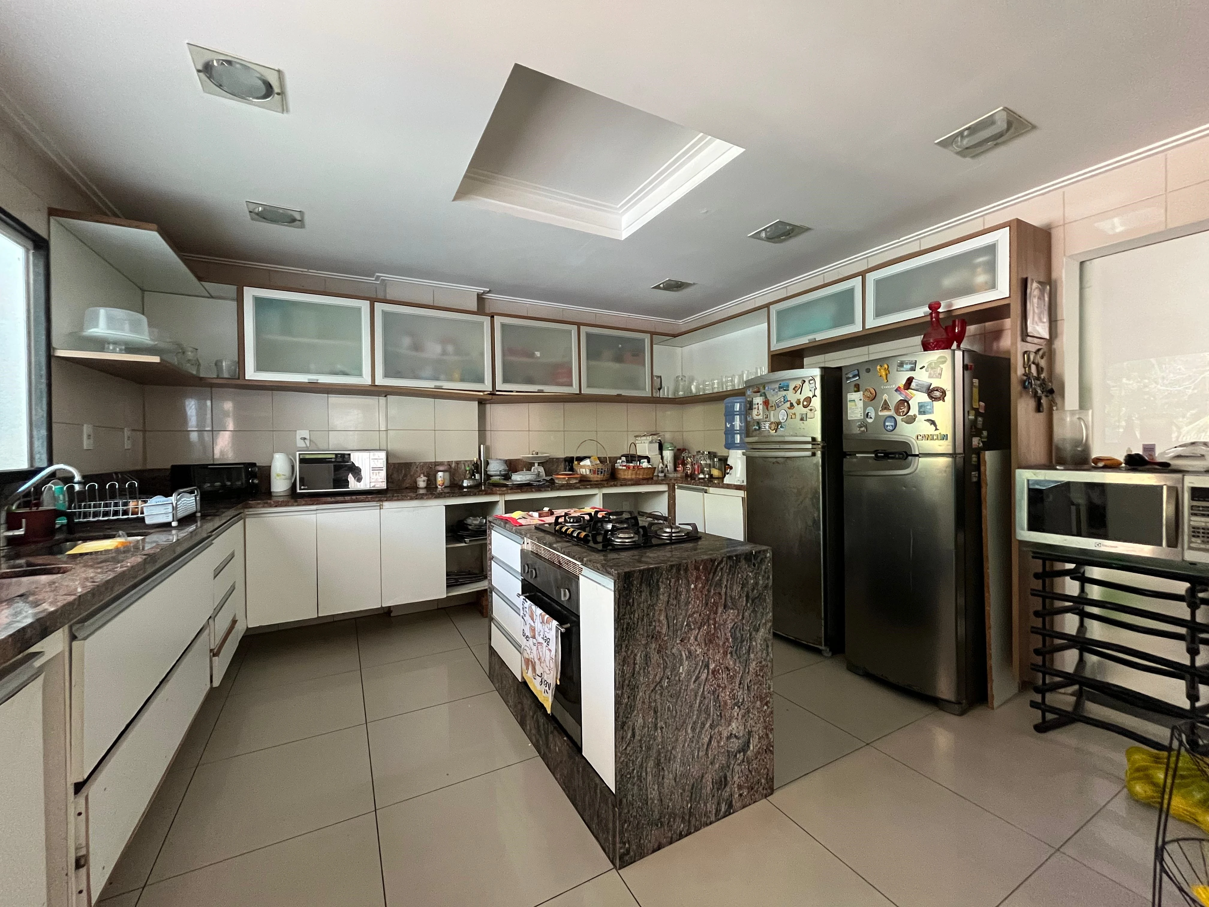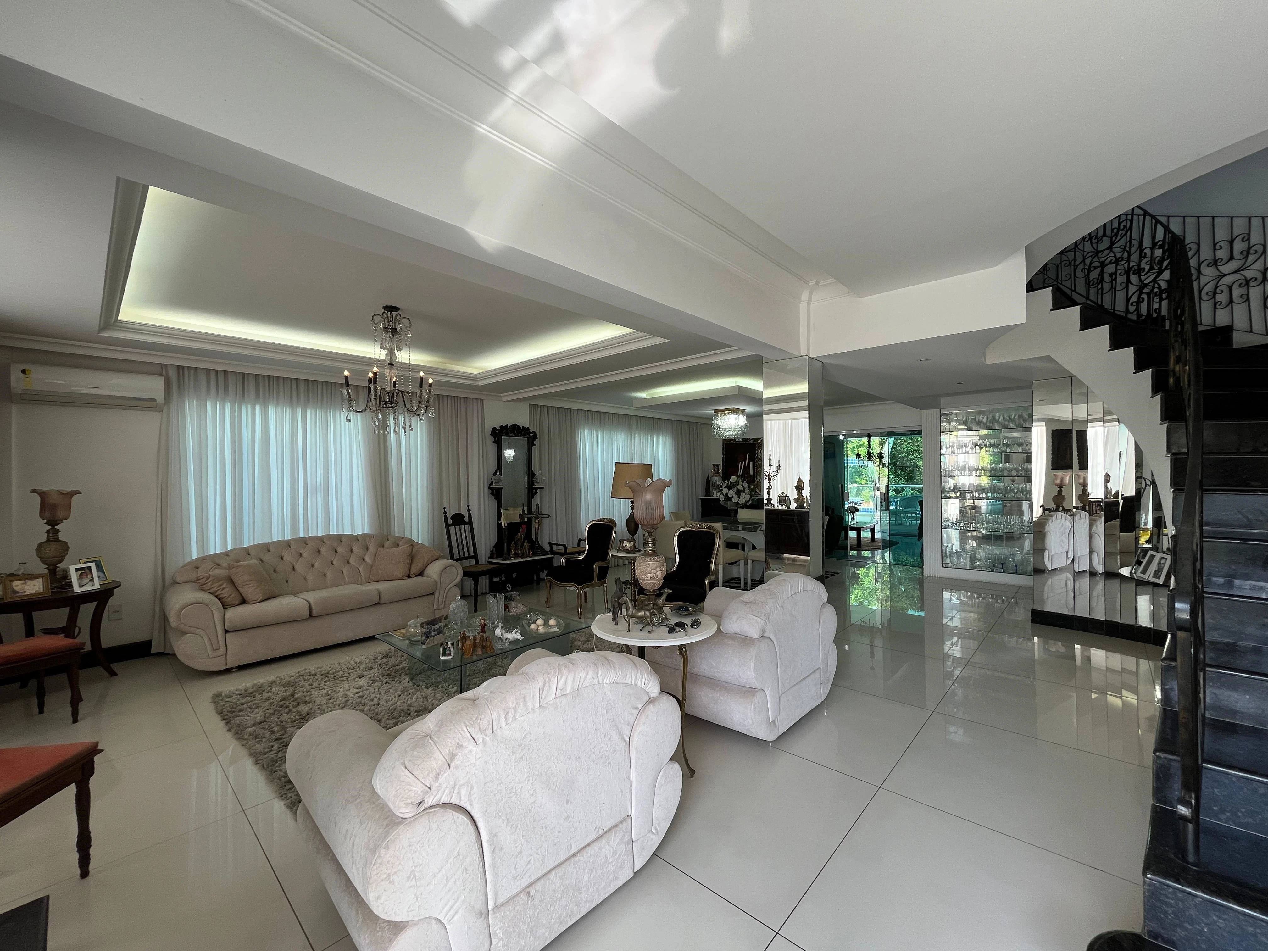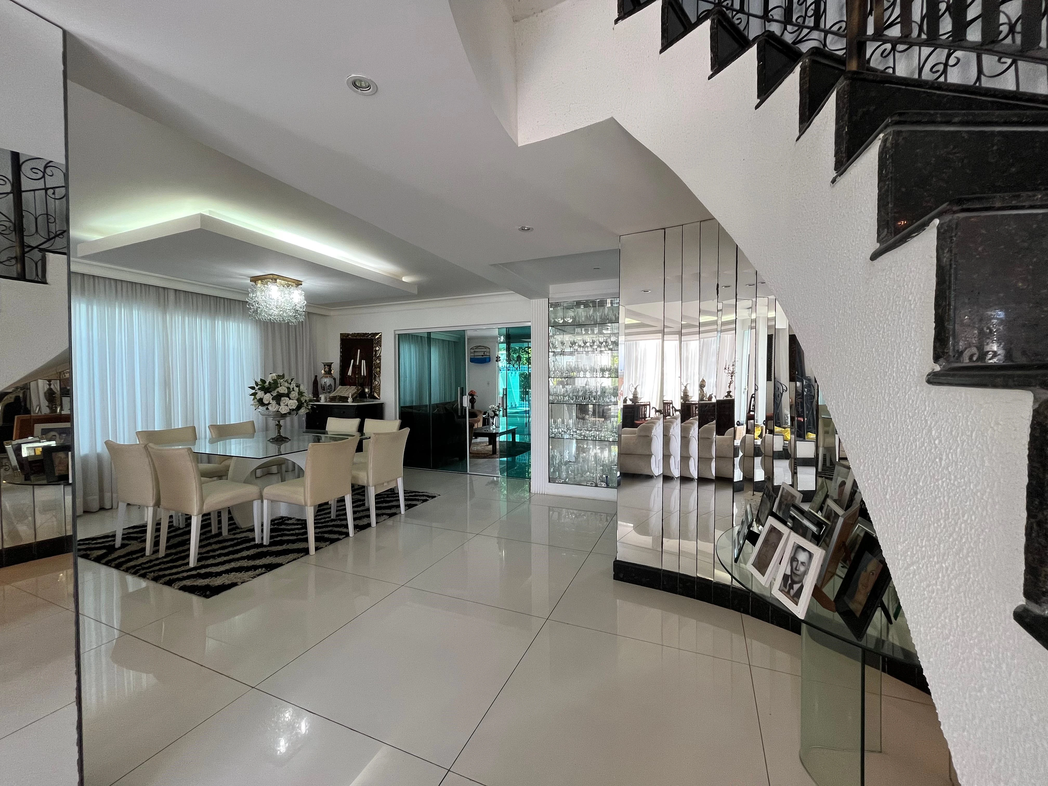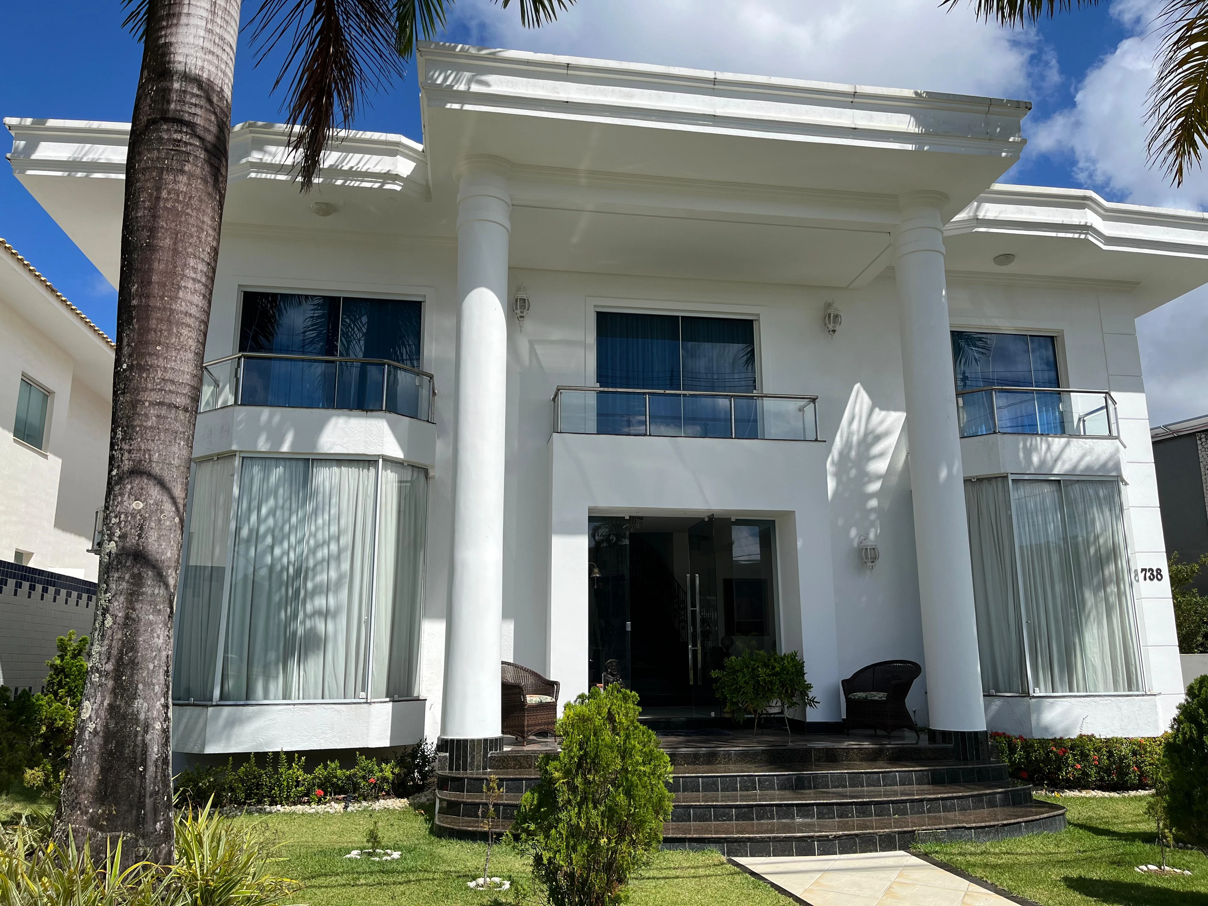 Casa de com cinco quartos, sendo 4 suítes à venda em Alphaville I. Com 600m² de área construída, sendo no 1º pavimento: 3 salas, banheiro com lavabo, 01 quarto, cozinha com despensa, área de serviço e piscina com cascata. No 2º pavimento sala íntima, 4 suítes com varanda, sendo a suíte máster com closet. No pavimento inferior, a garagem tem capacidade para 6 carros. A casa fica muito bem localizada num excelente condomínio fechado, com clube que proporciona quadras de esportes e salão de eventos. Próximo a delicatessen, restaurante, mall de lojas e a tranquilidade que o bairro de Alphaville oferece. Aceita permuta por apartamento de 4/4 no Le Parc.
