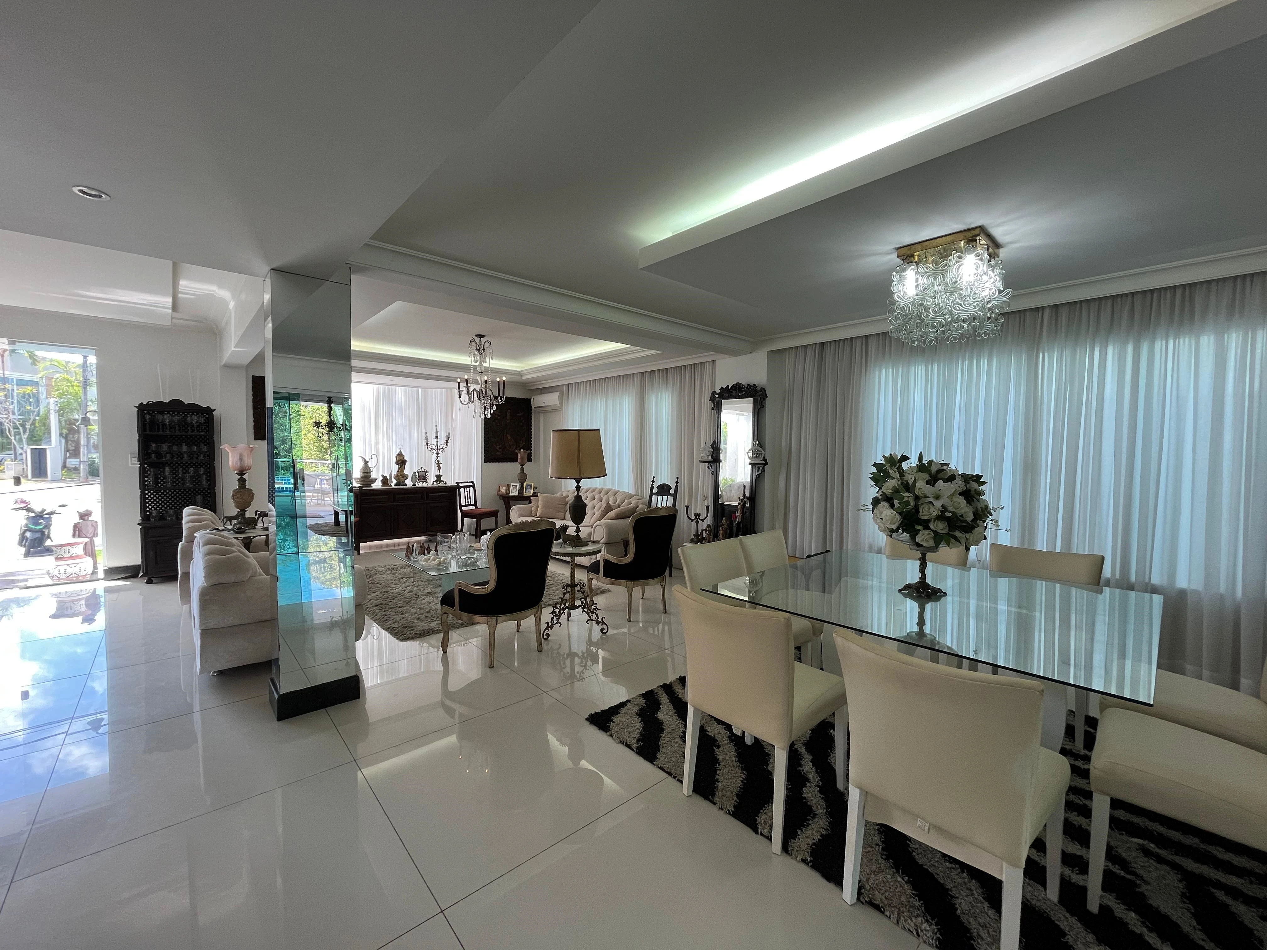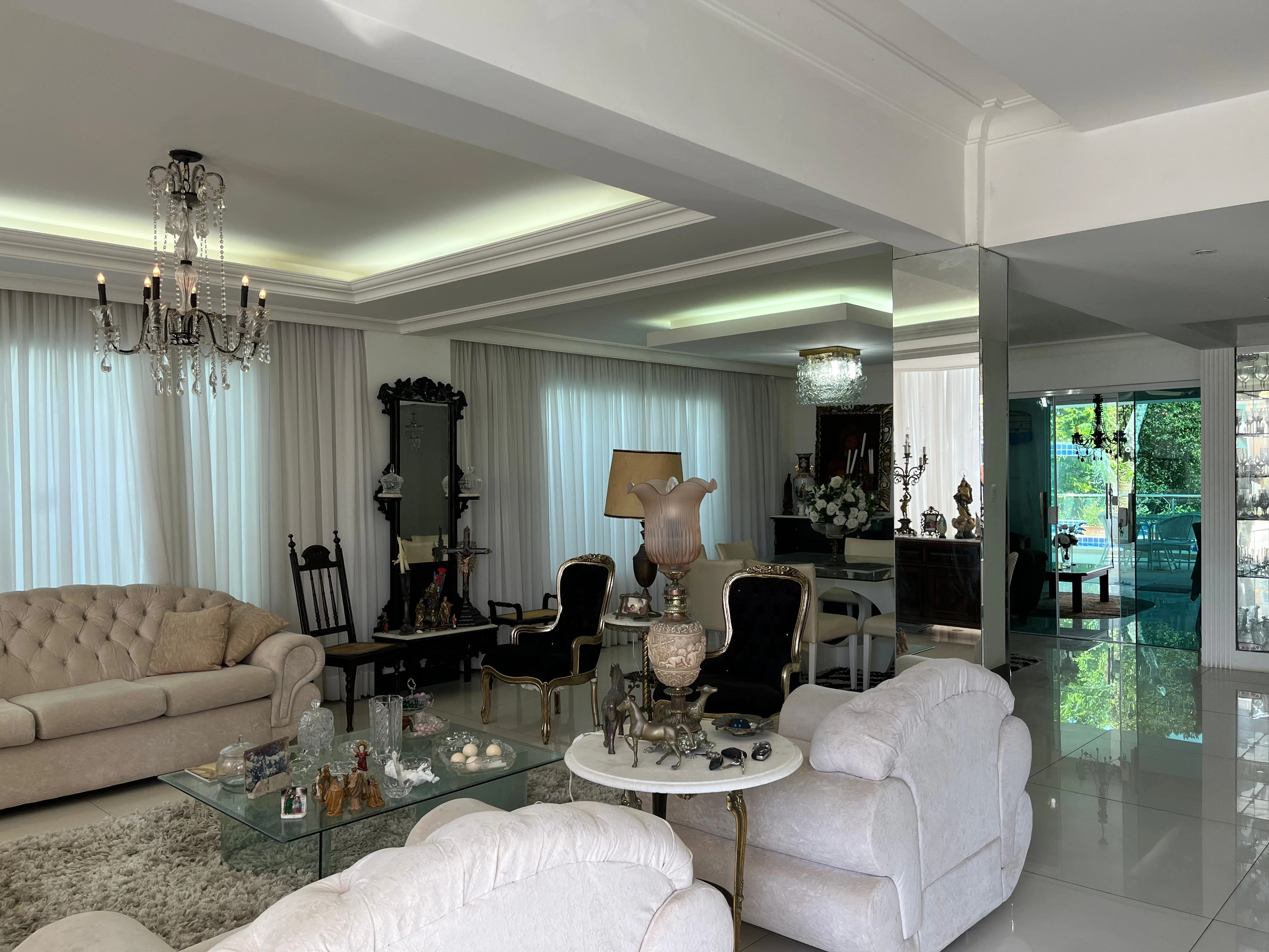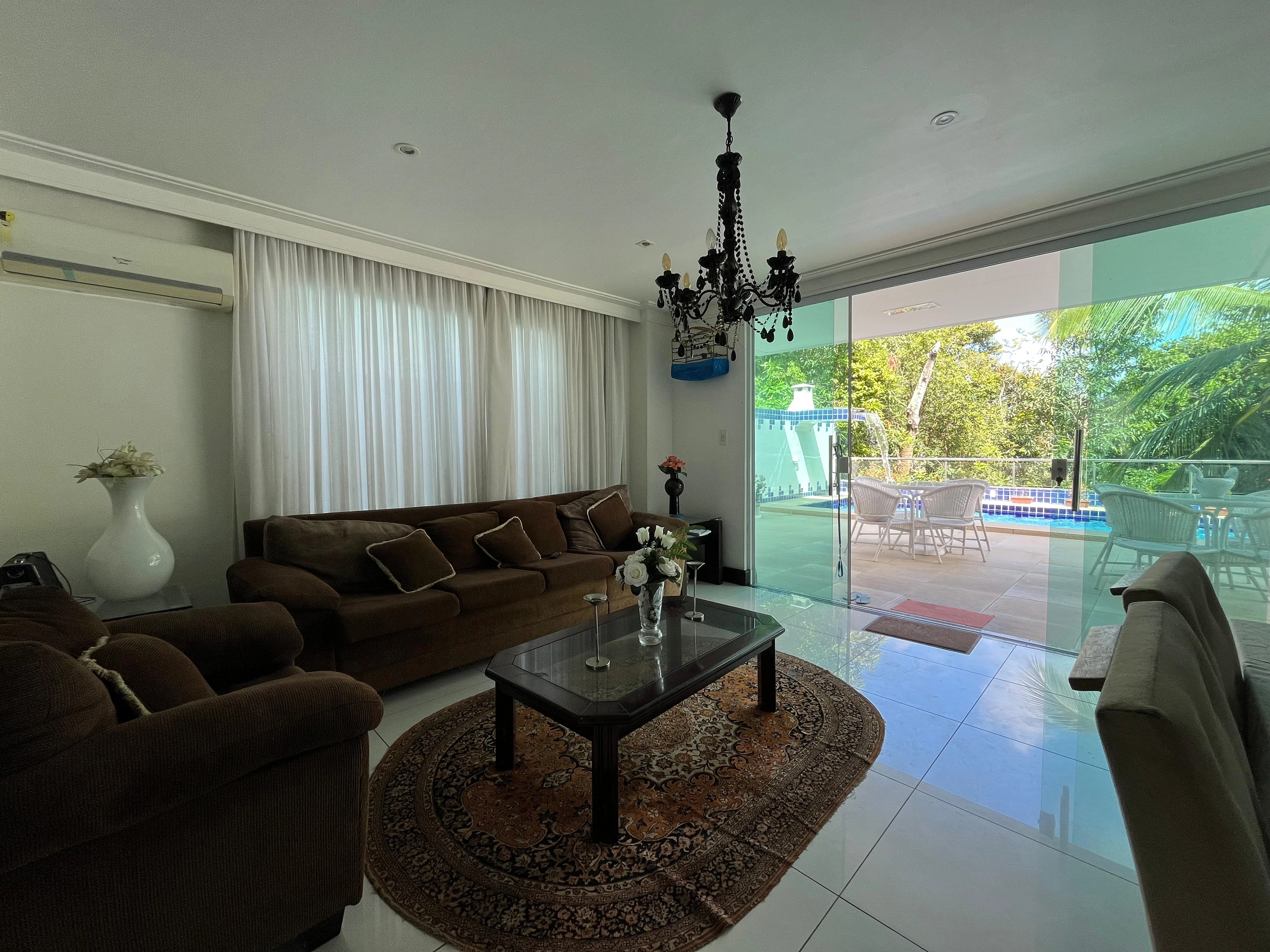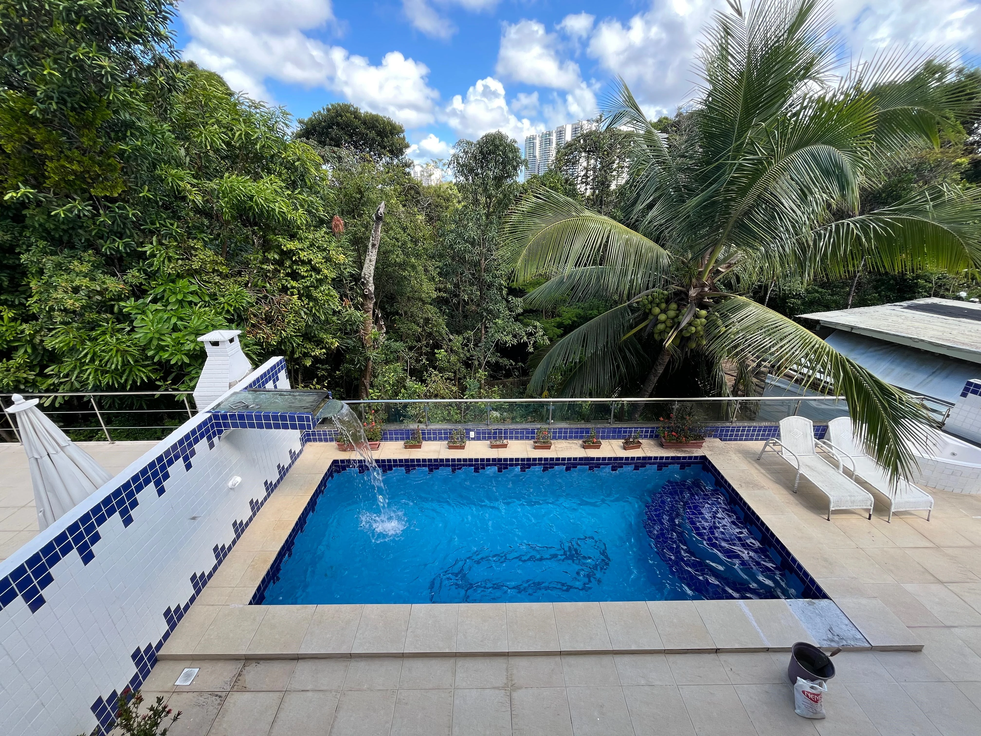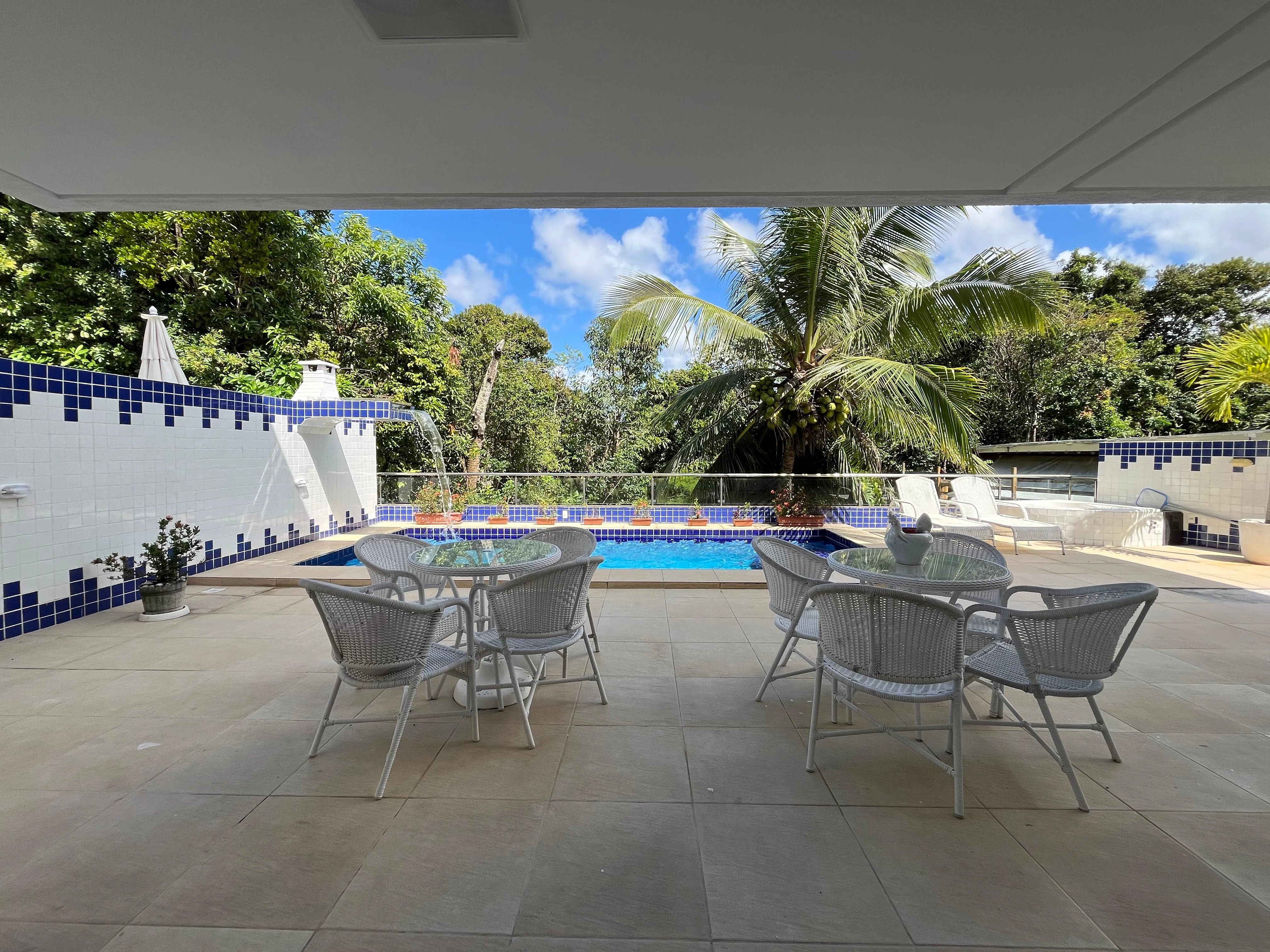Casa de com cinco quartos, sendo 4 suítes à venda em Alphaville I. Com 600m² de área construída, sendo no 1º pavimento: 3 salas, banheiro com lavabo, 01 quarto, cozinha com despensa, área de serviço e piscina com cascata. No 2º pavimento sala íntima, 4 suítes com varanda, sendo a suíte máster com closet. No pavimento inferior, a garagem tem capacidade para 6 carros. A casa fica muito bem localizada num excelente condomínio fechado, com clube que proporciona quadras de esportes e salão de eventos. Próximo a delicatessen, restaurante, mall de lojas e a tranquilidade que o bairro de Alphaville oferece. Aceita permuta por apartamento de 4/4 no Le Parc.