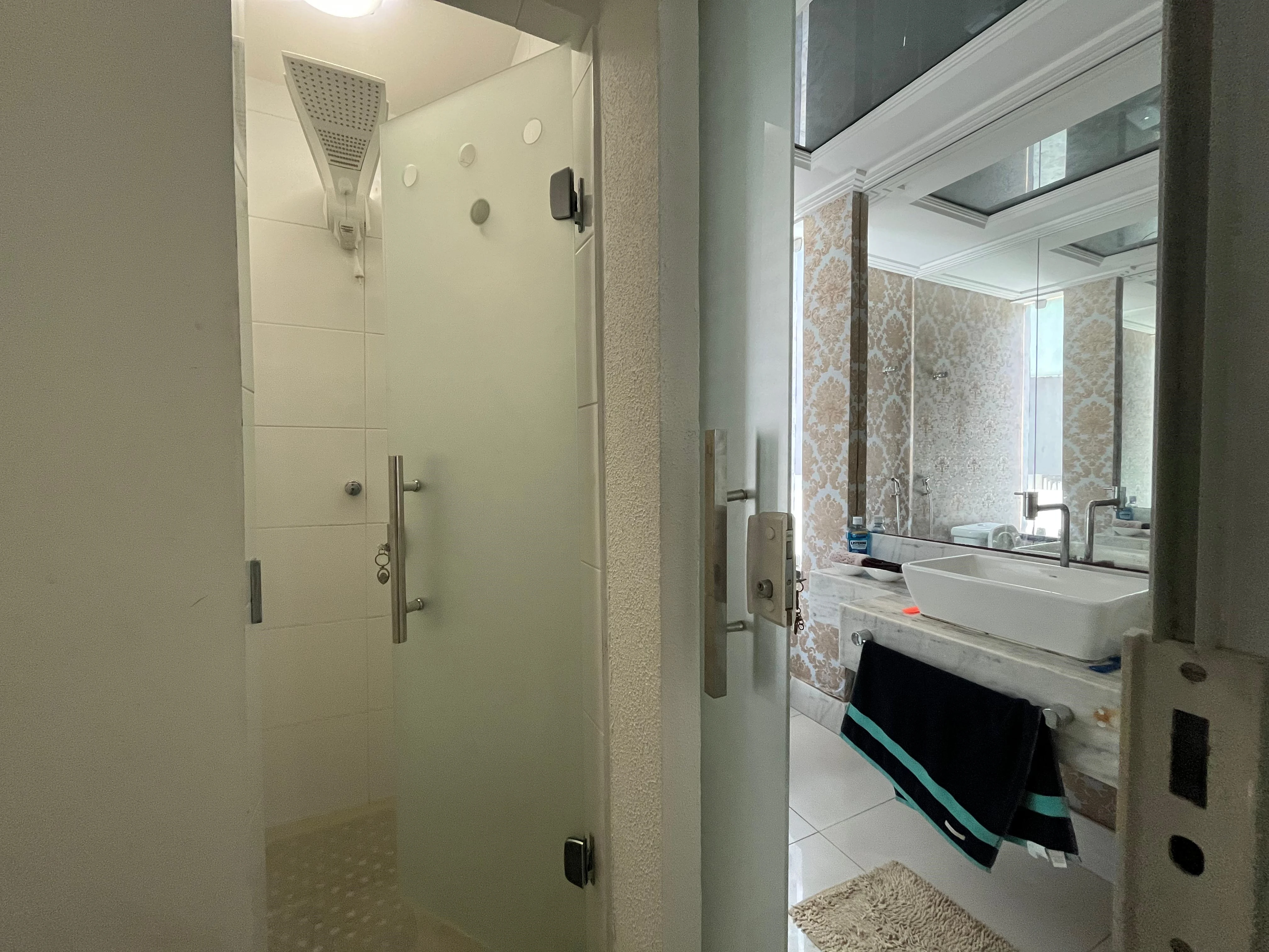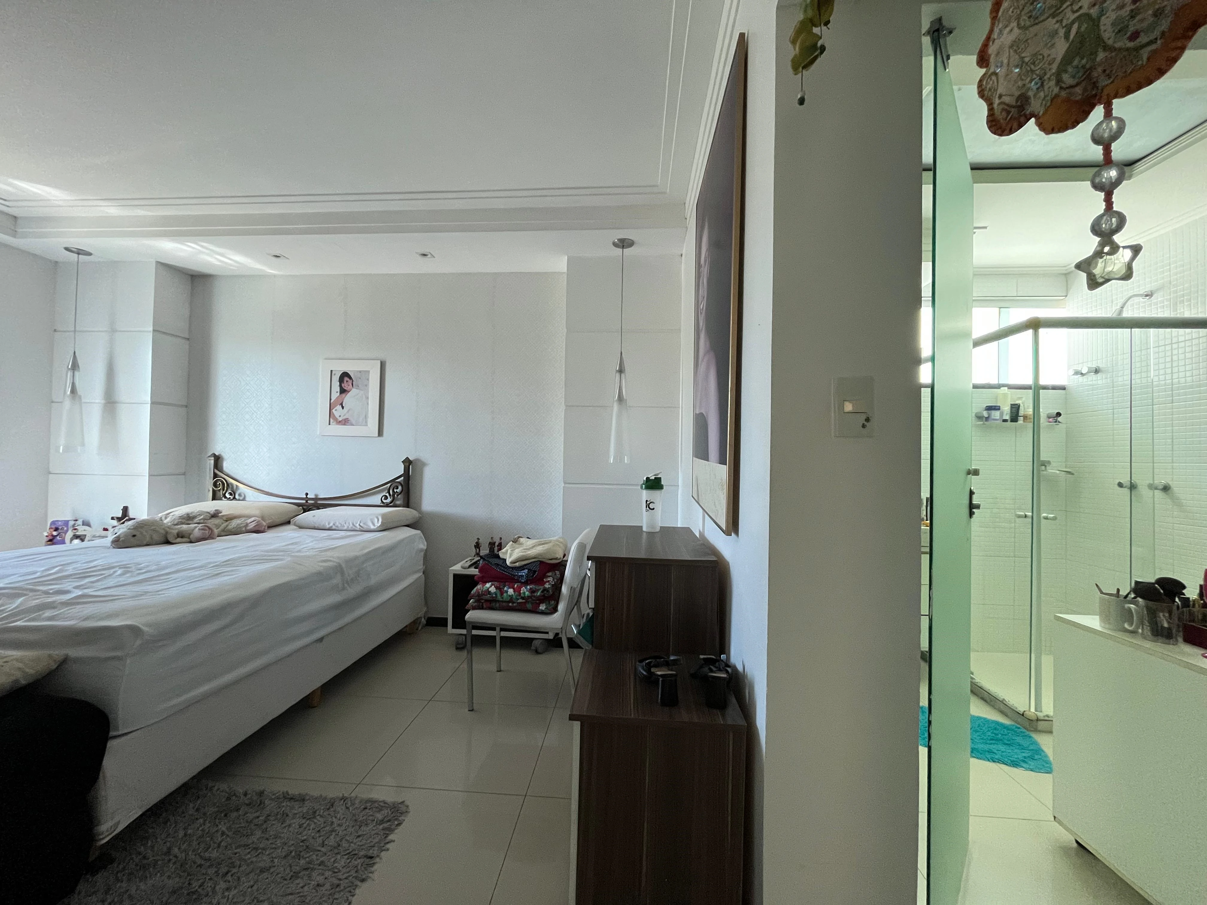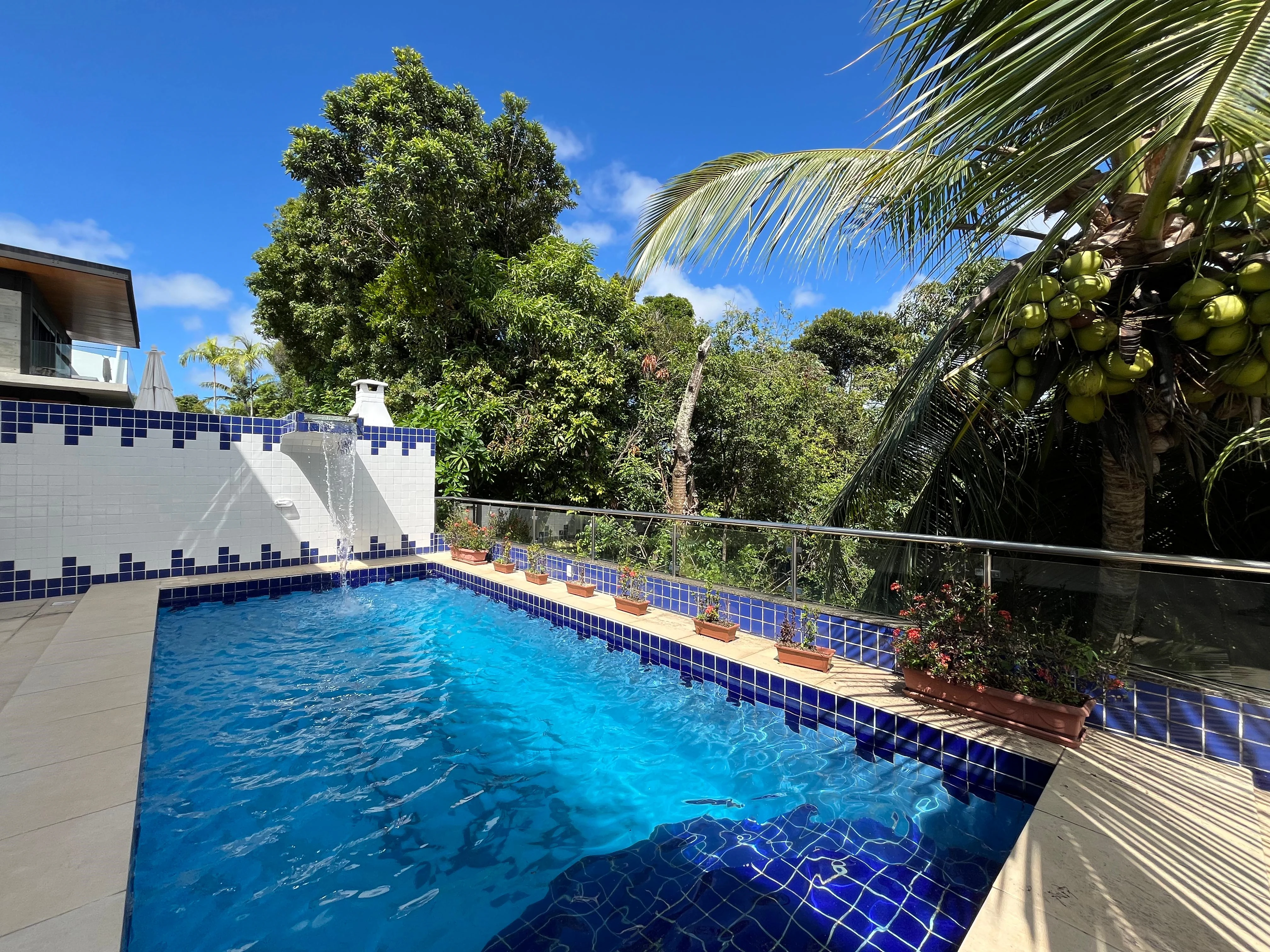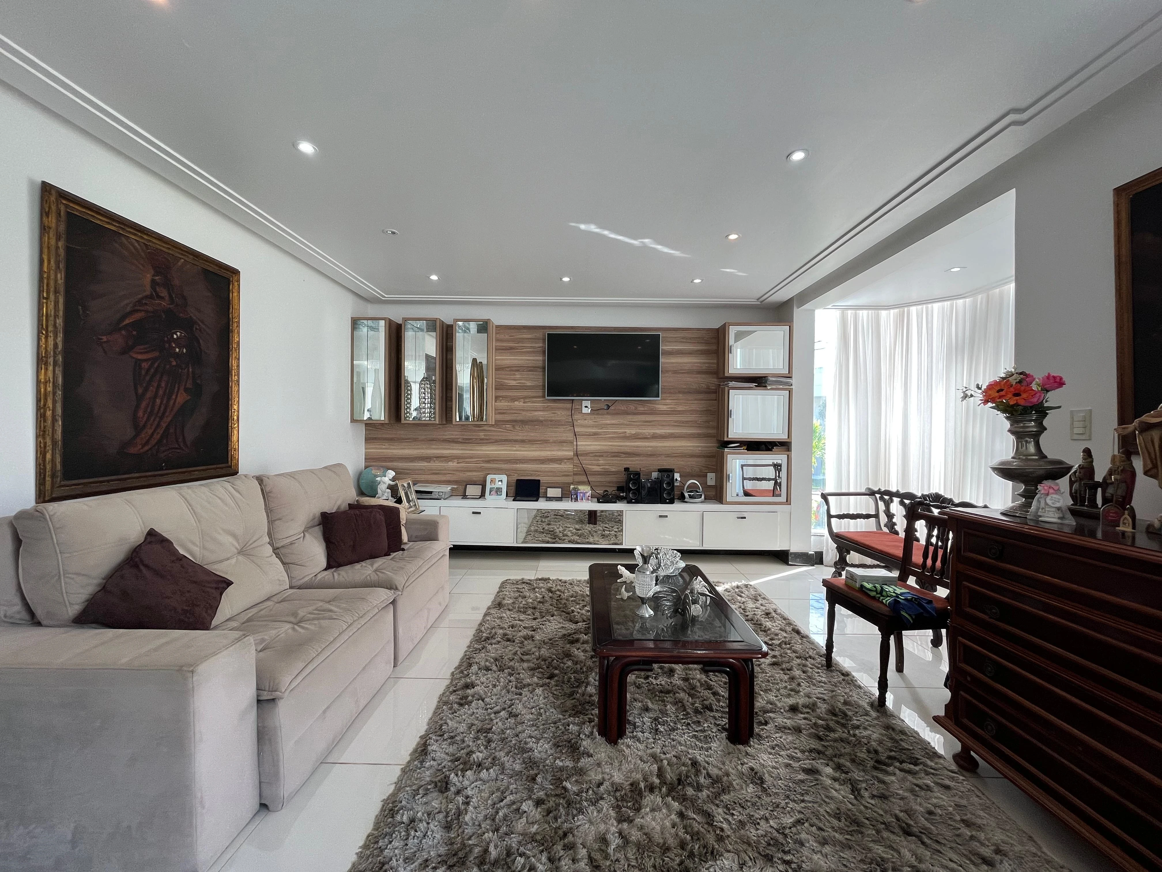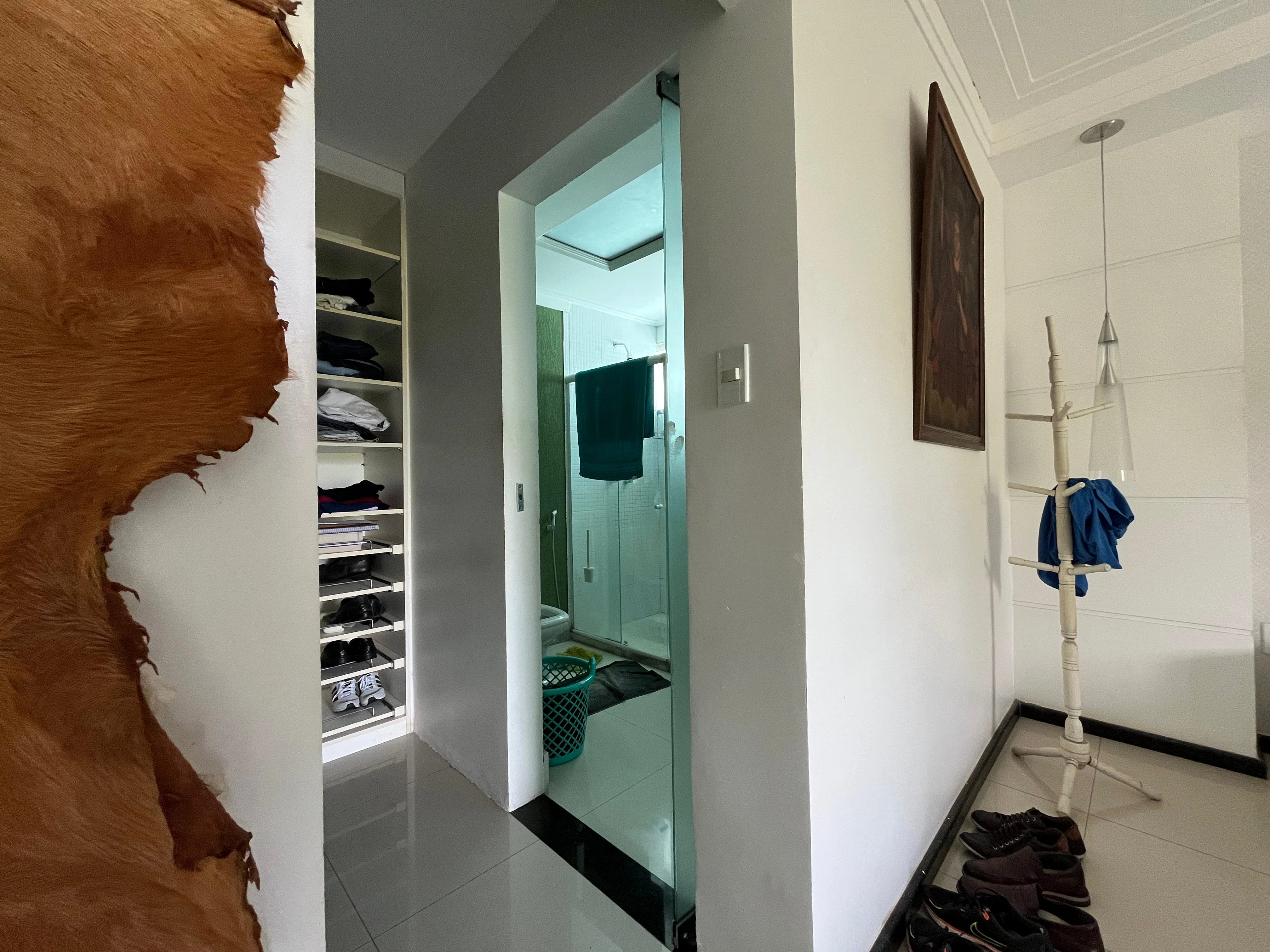 Casa de com cinco quartos, sendo 4 suítes à venda em Alphaville I. Com 600m² de área construída, sendo no 1º pavimento: 3 salas, banheiro com lavabo, 01 quarto, cozinha com despensa, área de serviço e piscina com cascata. No 2º pavimento sala íntima, 4 suítes com varanda, sendo a suíte máster com closet. No pavimento inferior, a garagem tem capacidade para 6 carros. A casa fica muito bem localizada num excelente condomínio fechado, com clube que proporciona quadras de esportes e salão de eventos. Próximo a delicatessen, restaurante, mall de lojas e a tranquilidade que o bairro de Alphaville oferece. Aceita permuta por apartamento de 4/4 no Le Parc.