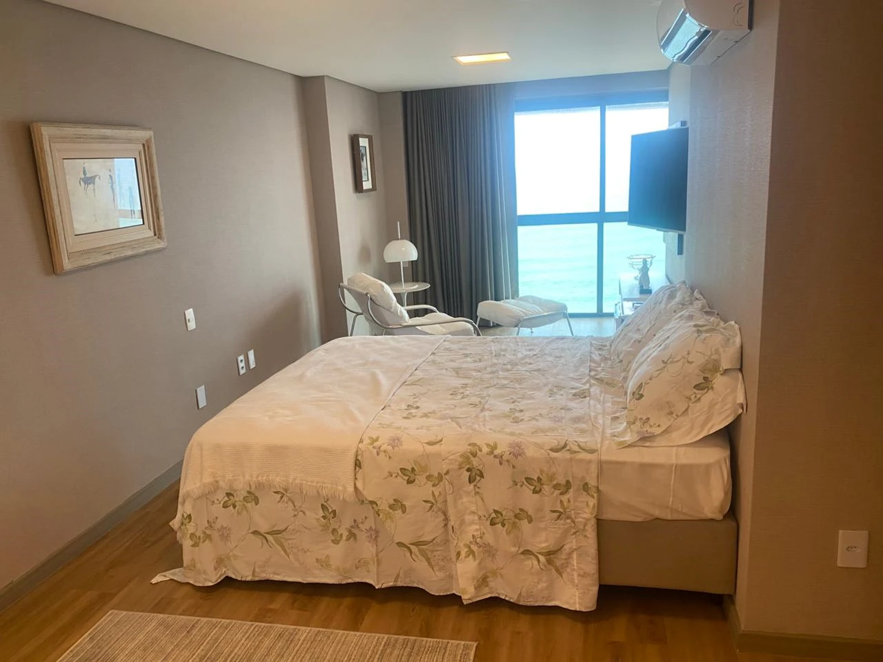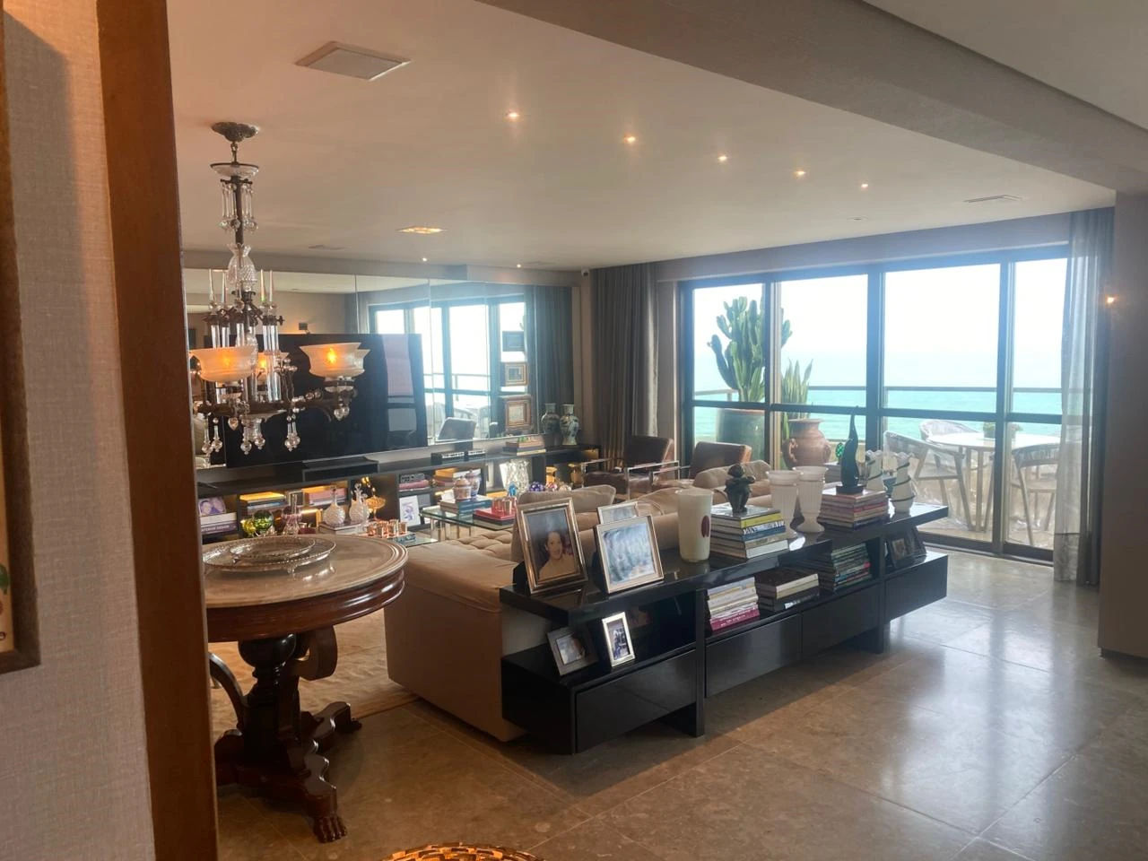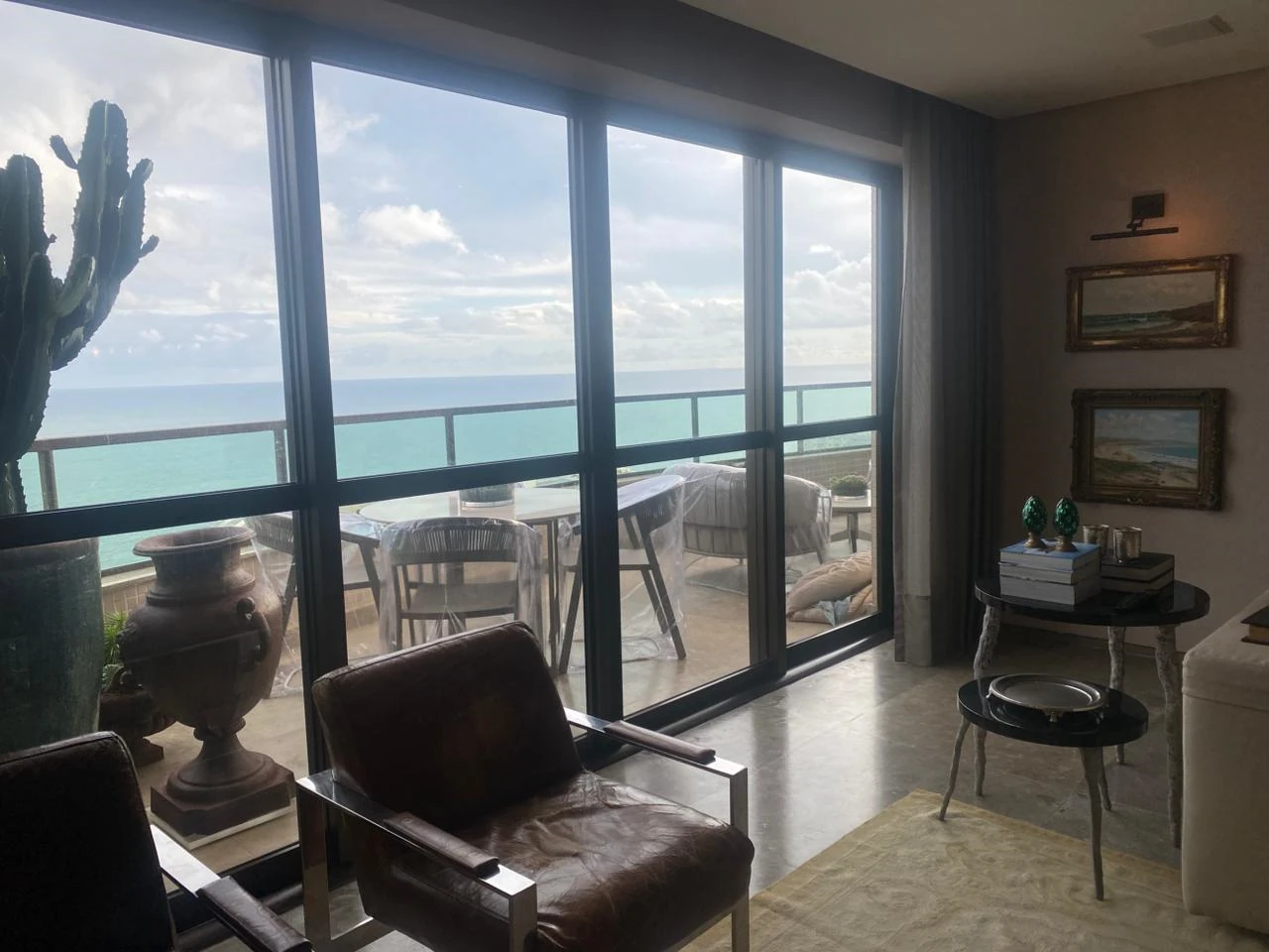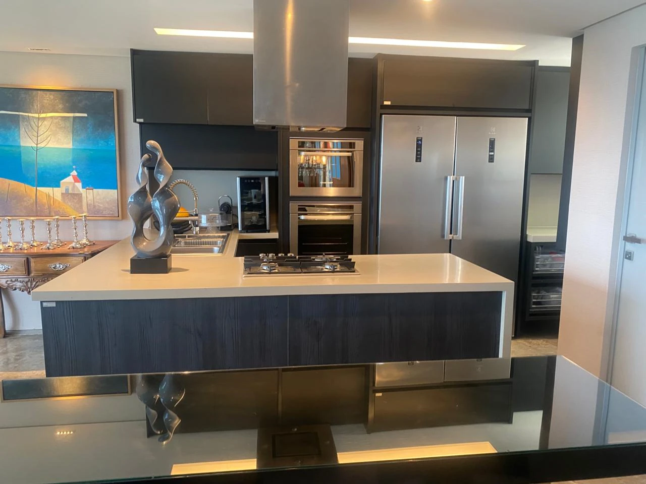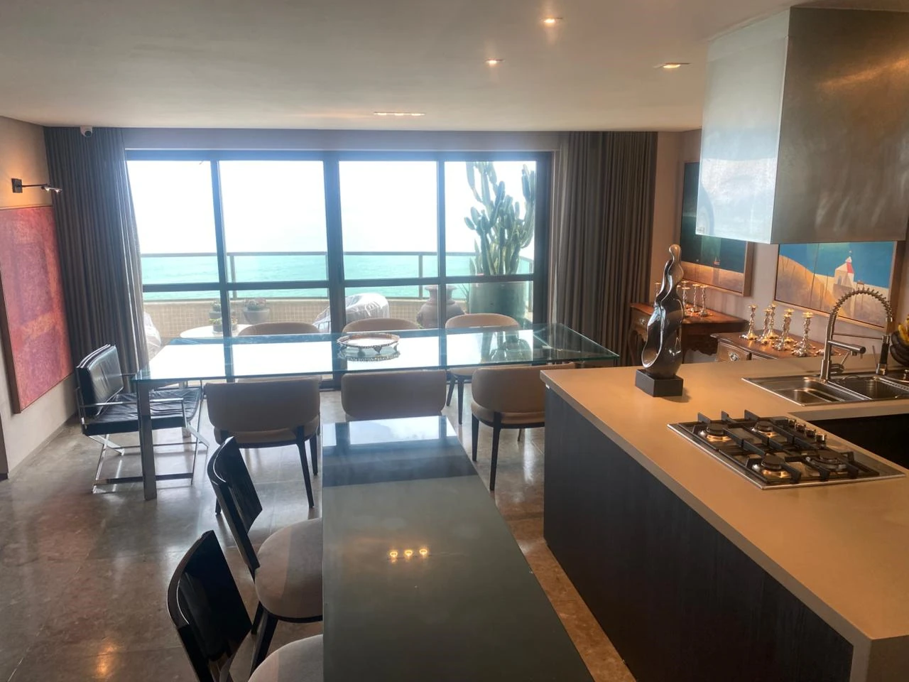 Finamente decorado e 100% mobiliado, composto de sala em dois ambientes e home theater, lavabo, varanda, cozinha, louçaria,, despensa, área e banheiro de servilo no pavimento inerior e 3 quartos sendo duas suíes com banheiro social (todos com vista mar), no pavimento superior. Todos os armários da Kitchens, móveis da Artefacto.