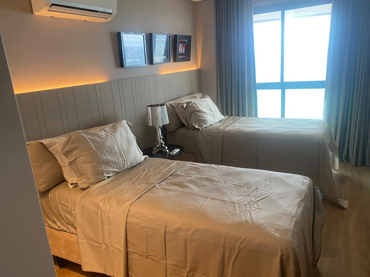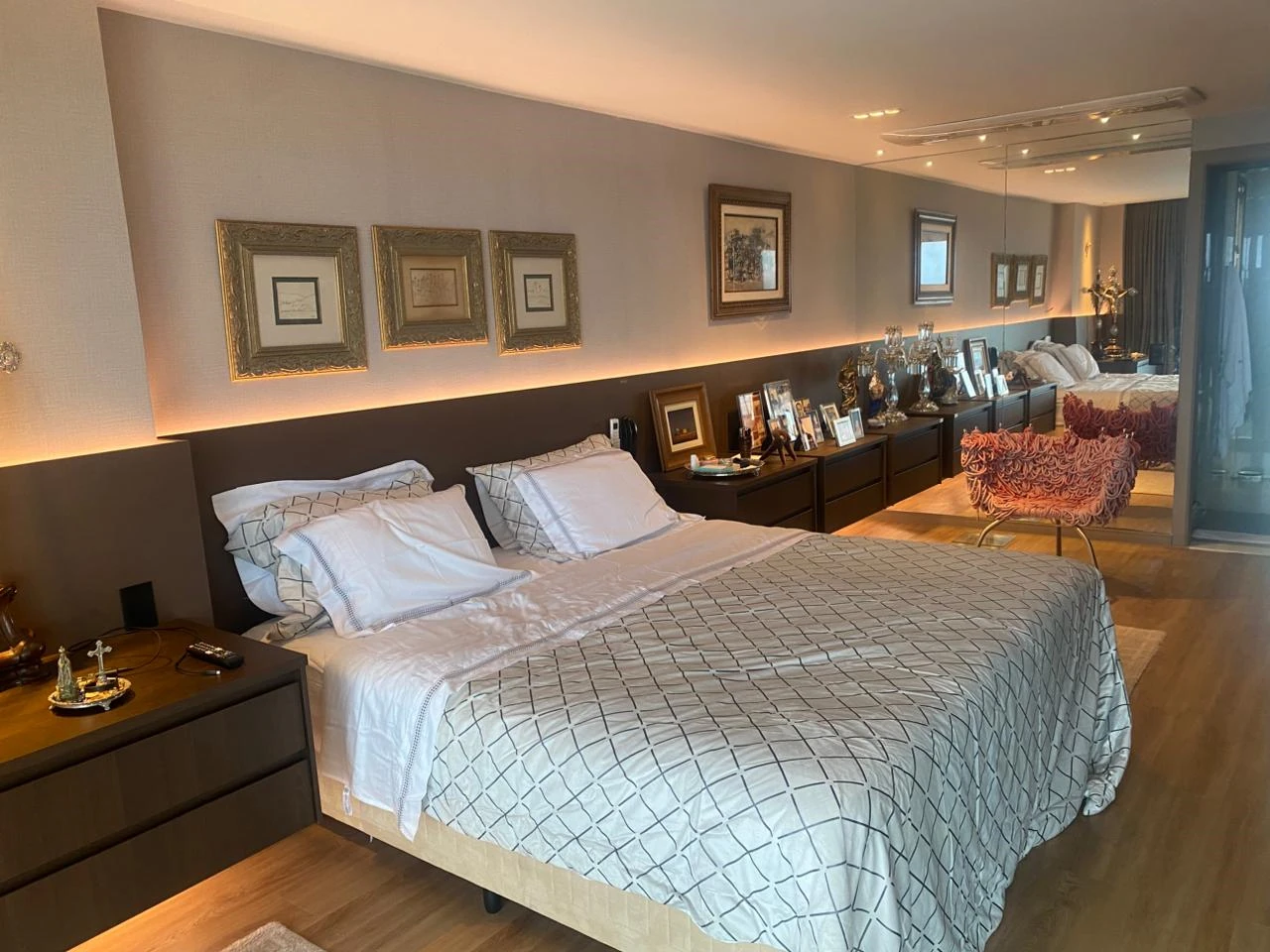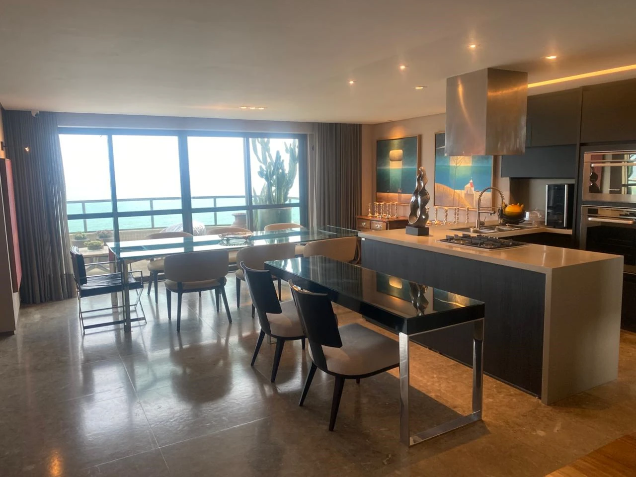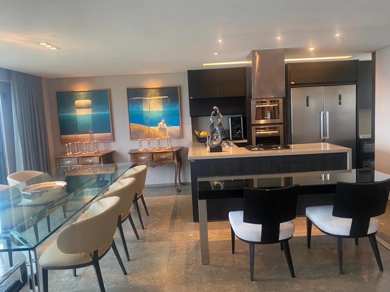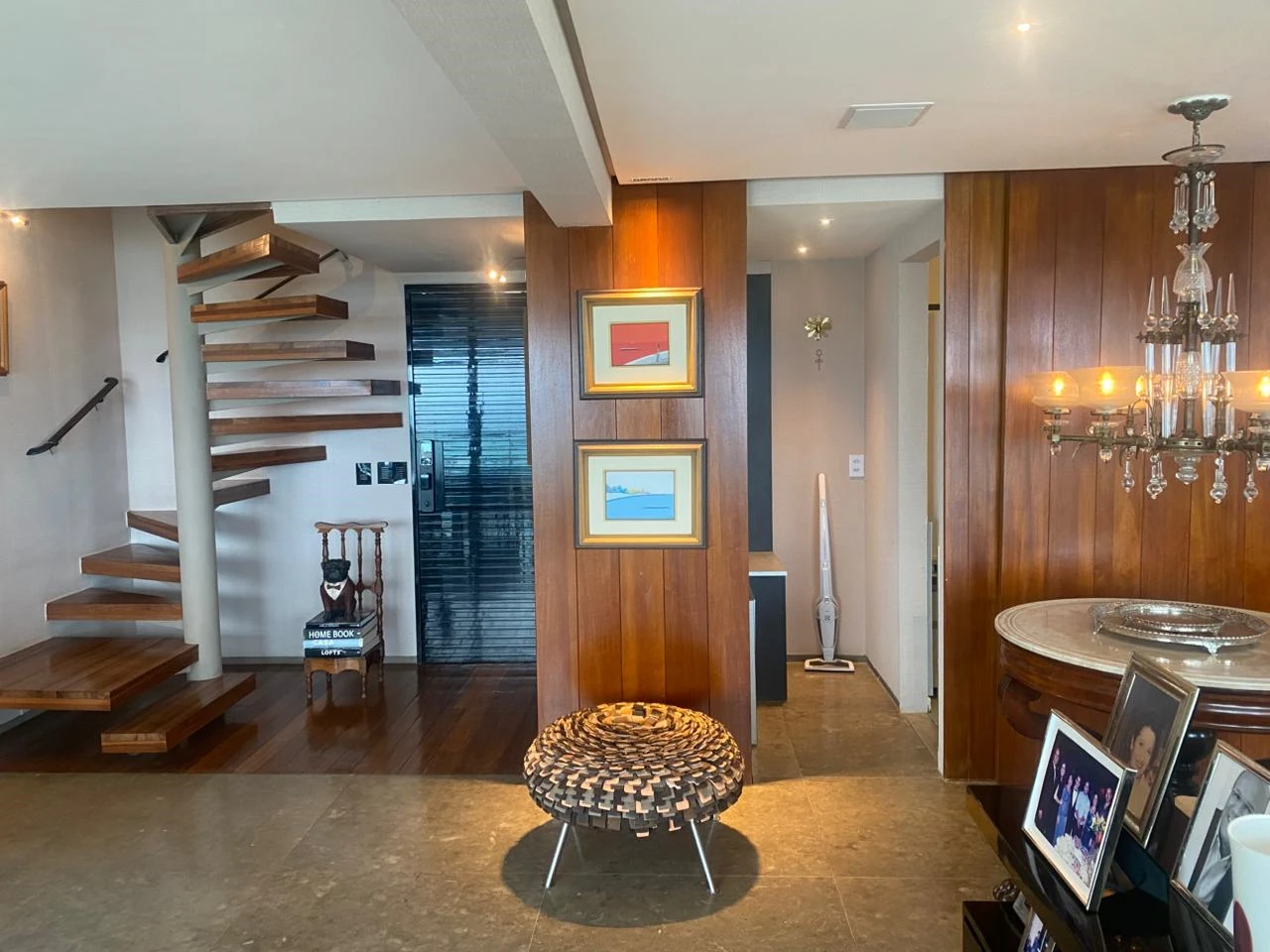 Finamente decorado e 100% mobiliado, composto de sala em dois ambientes e home theater, lavabo, varanda, cozinha, louçaria,, despensa, área e banheiro de servilo no pavimento inerior e 3 quartos sendo duas suíes com banheiro social (todos com vista mar), no pavimento superior. Todos os armários da Kitchens, móveis da Artefacto.