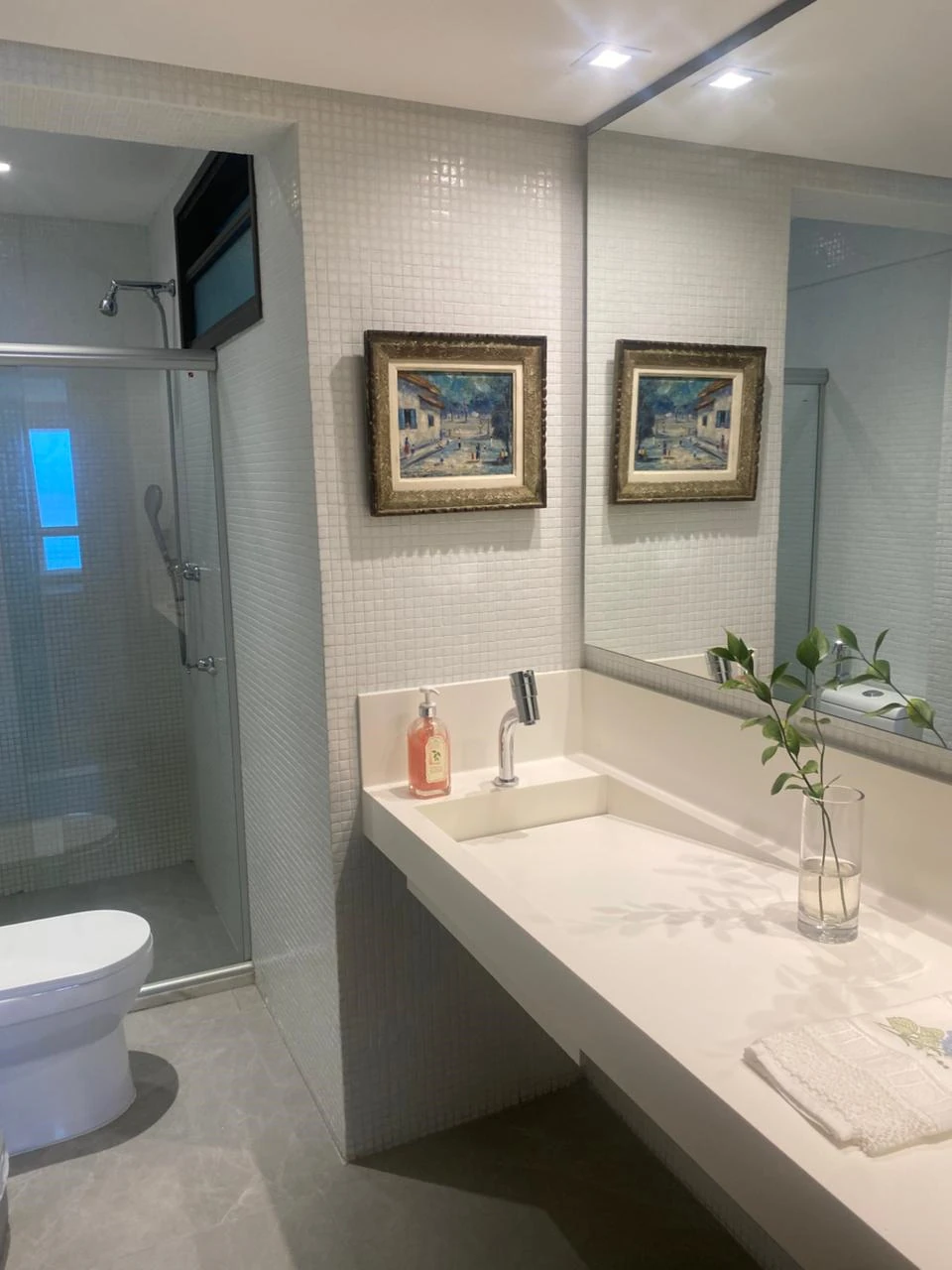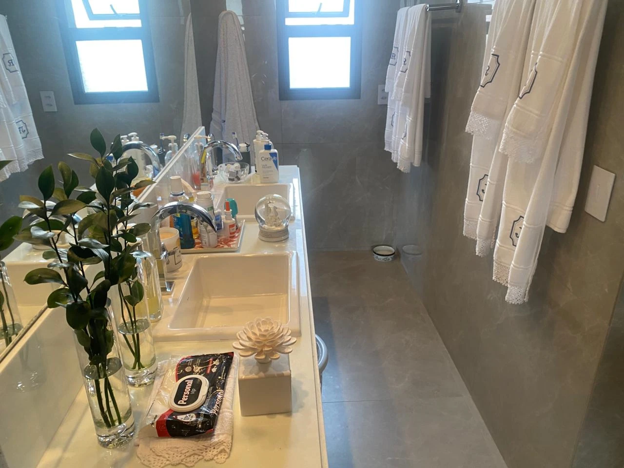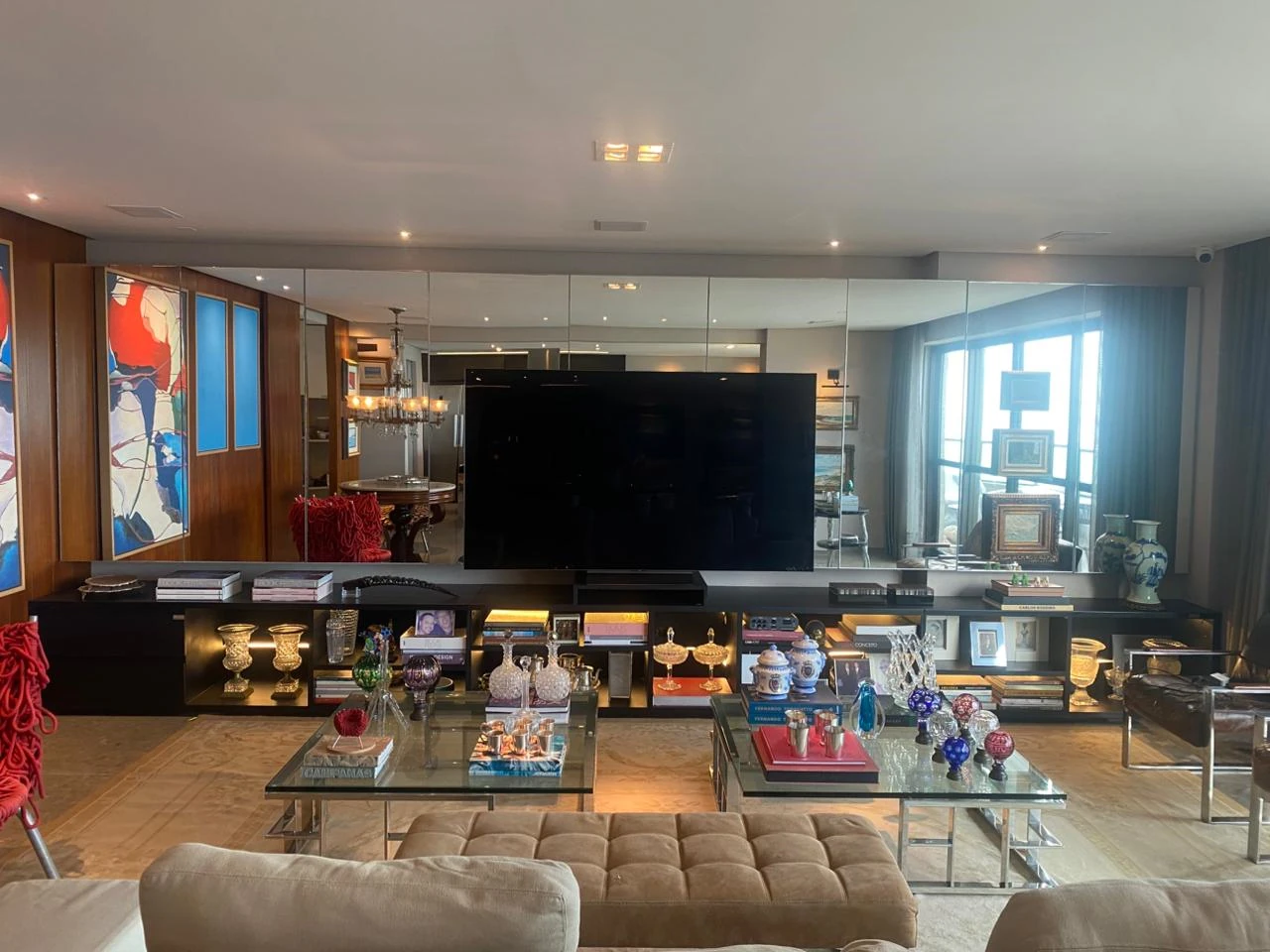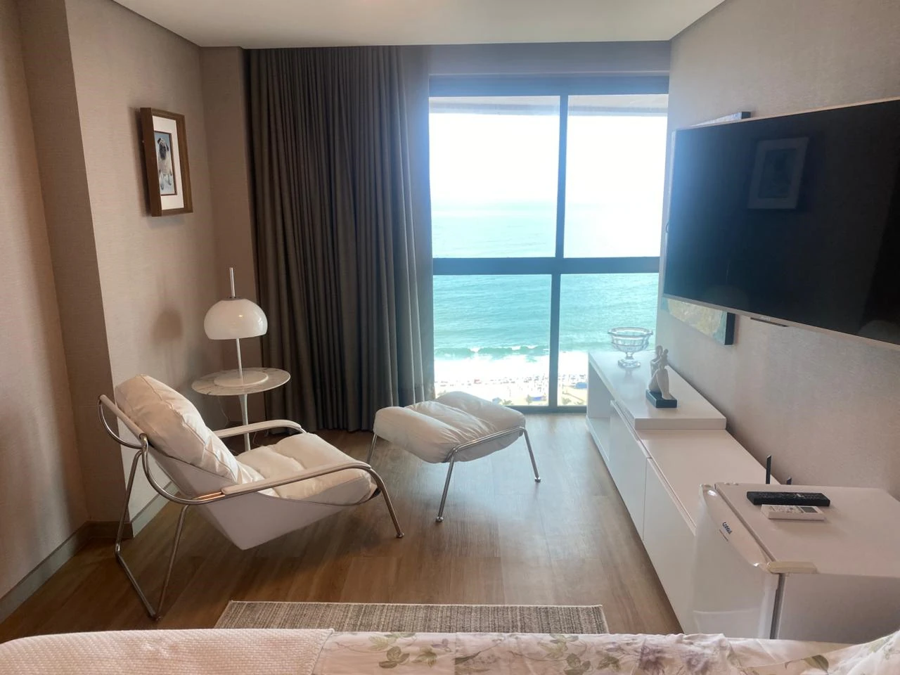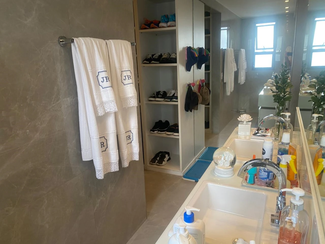 Finamente decorado e 100% mobiliado, composto de sala em dois ambientes e home theater, lavabo, varanda, cozinha, louçaria,, despensa, área e banheiro de servilo no pavimento inerior e 3 quartos sendo duas suíes com banheiro social (todos com vista mar), no pavimento superior. Todos os armários da Kitchens, móveis da Artefacto.