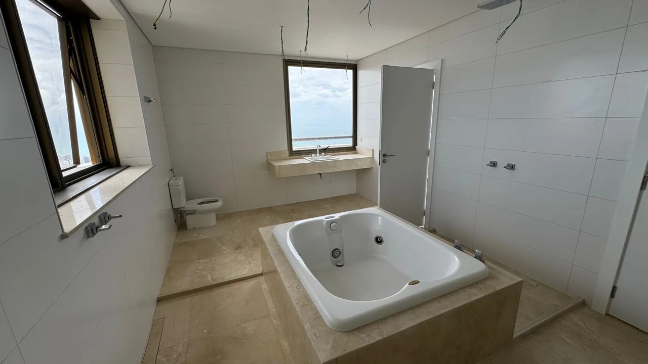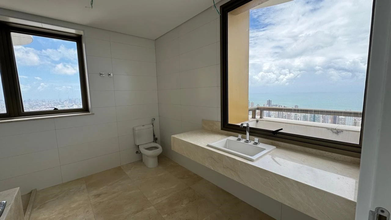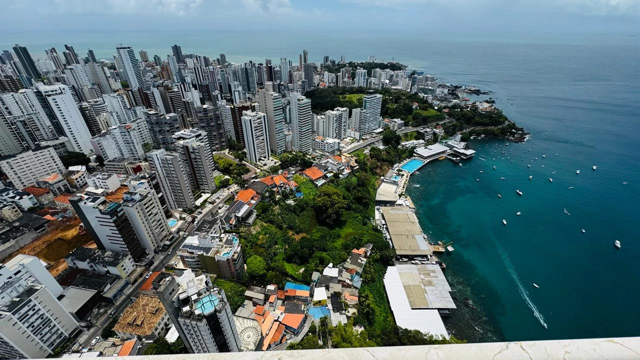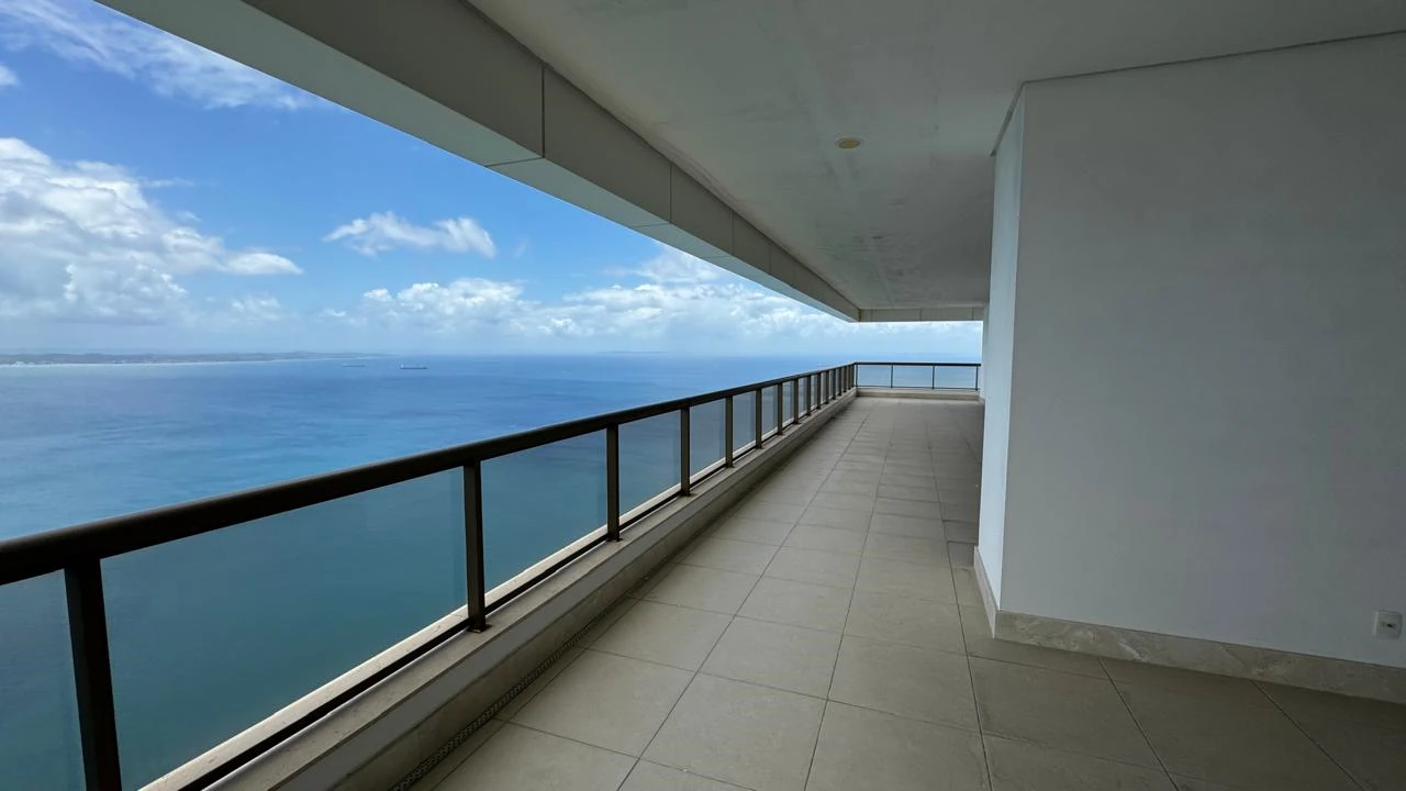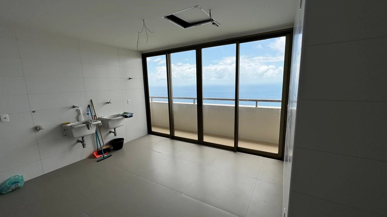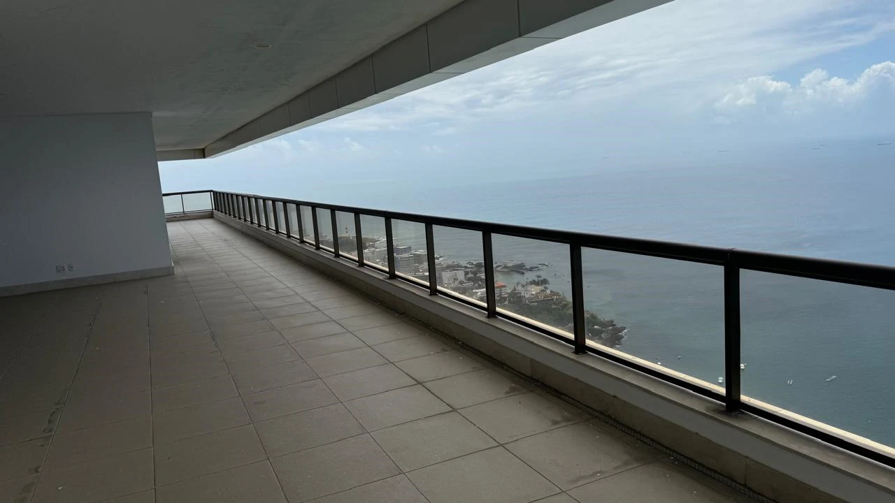 Apartamento com cinco suítes à venda no Mansão Wildberger, Largo da Vitória. Andar altíssimo com 993m² de área privativa, este apartamento possui ampla sala com varanda e home theatre/home office, debruçados sob a Baia de Todos os Santos, proporcionando uma vista mar panorâmica também dos quartos. A suíte master possui três ambientes, que pode ser criado 2 quartos de vestir, além de dois banheiros com acessos separados. A cozinha possui uma linda vista para a Bahia Marina e os quartos possuem vista para o Yacht Clube e para Igreja de Santo Antônio da Barra.