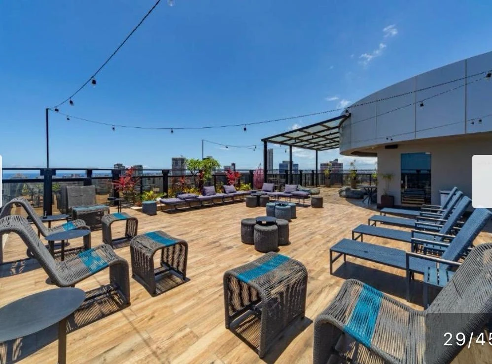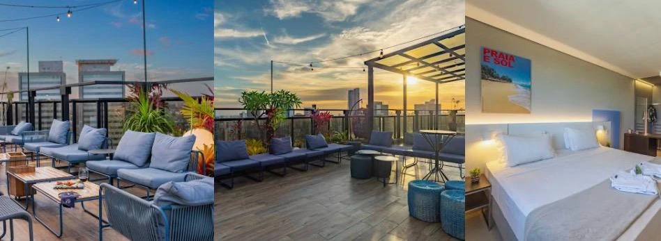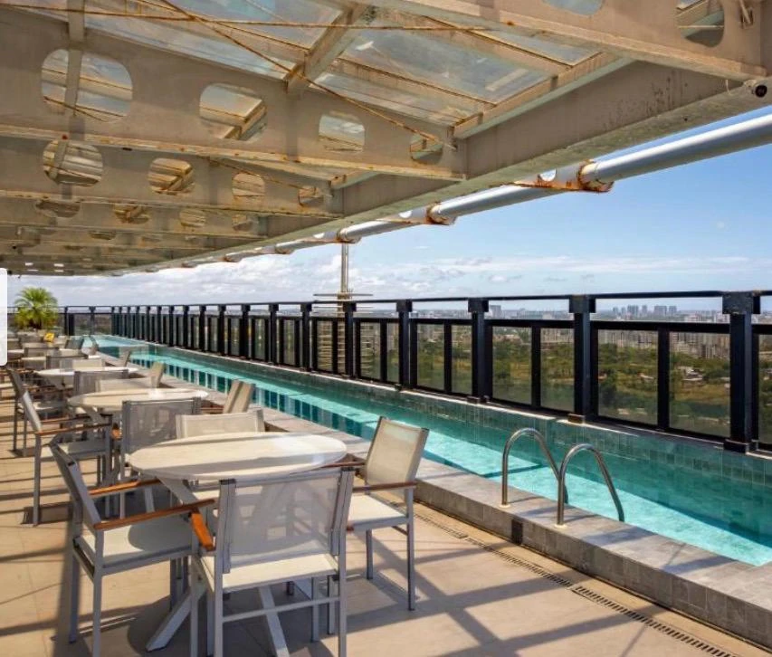 Infraestrutura completa do Apart Hotel, adm pela Intercity: Rooftop com piscina adulto e infantil, academia, sauna e lounge, recepção e portaria 24h, elevadores modernos e serviços de hotelaria.