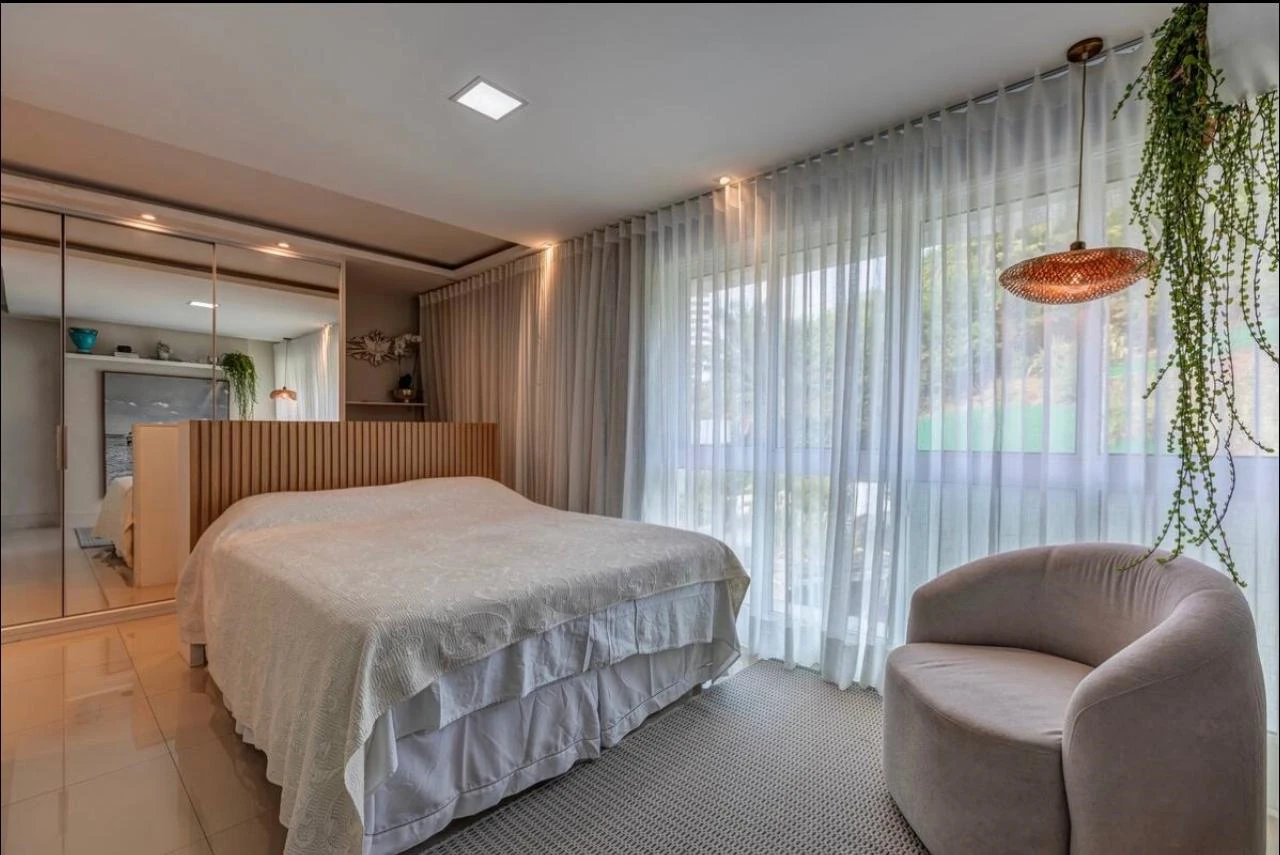 O Imóvel foi reformado, está com armários em todos os ambientes, ar condicionado nos quartos e no living. Projeto de iluminação, piscina com privacidade, vista para área verde.