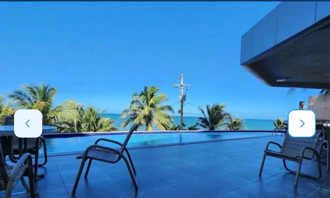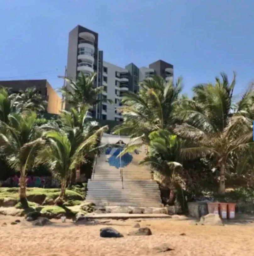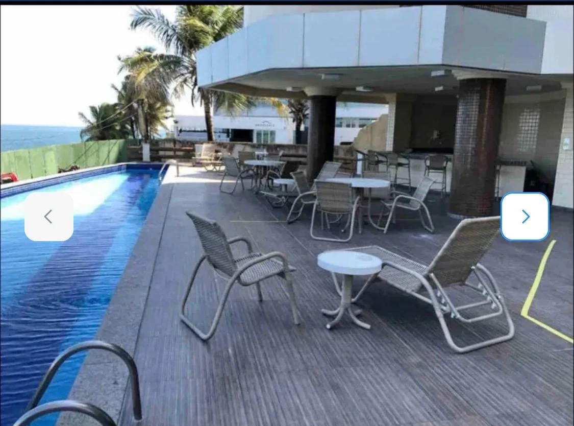 O prédio oferece recepção 24 horas, elevador, piscina com vista para o mar, academia e estacionamento para visitantes.