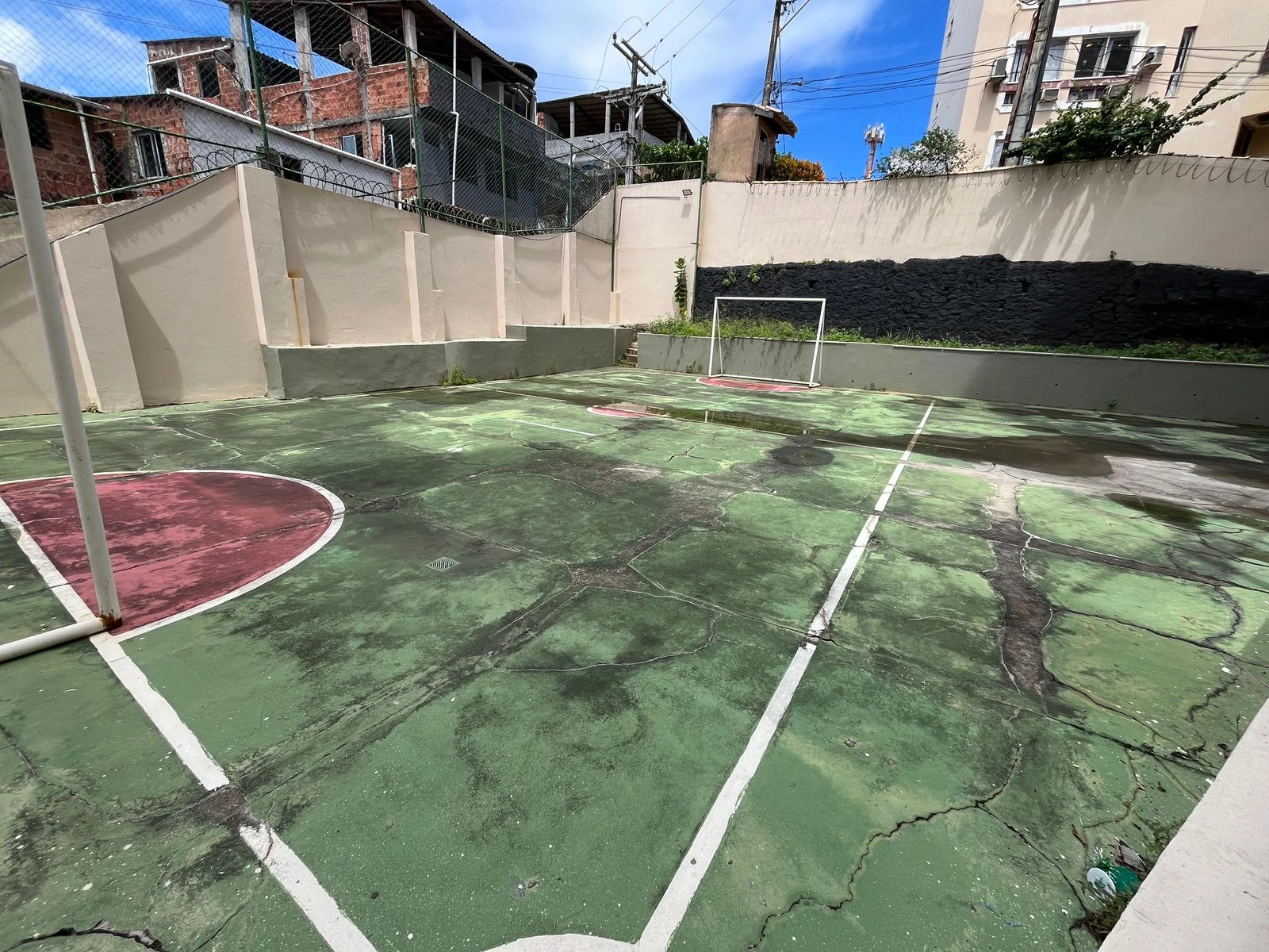 Prédio conta com portaria 24h, vagas para visitantes, quadra esportiva e salão de festas.