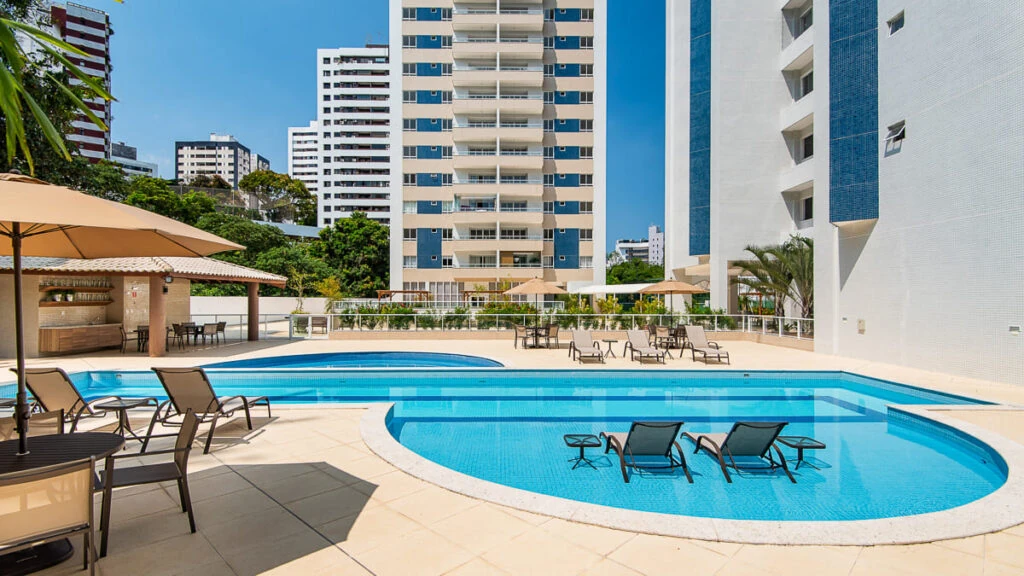 🏊 Relaxamento: Piscina com deck molhado, Sauna e Academia equipada.