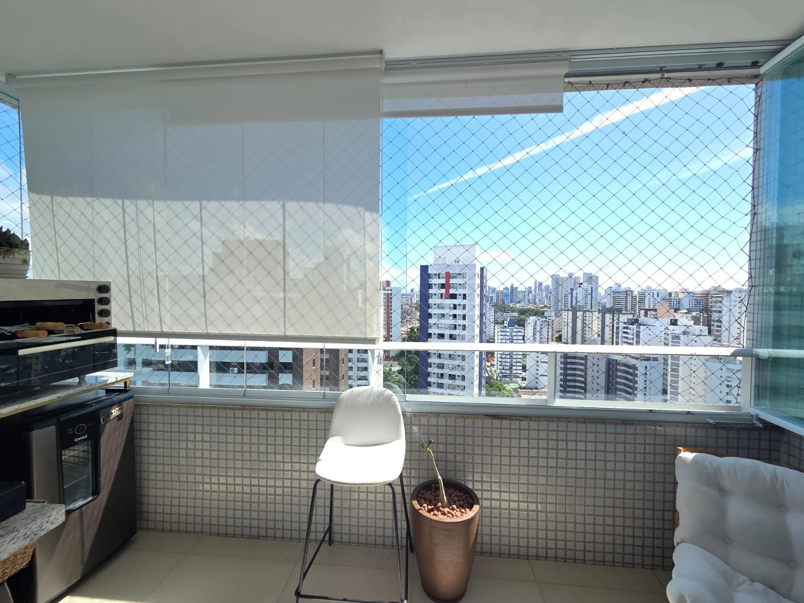 Duas vagas de garagem. Andar alto para desfrutar de ventilação constante e uma vista privilegiada da varanda.