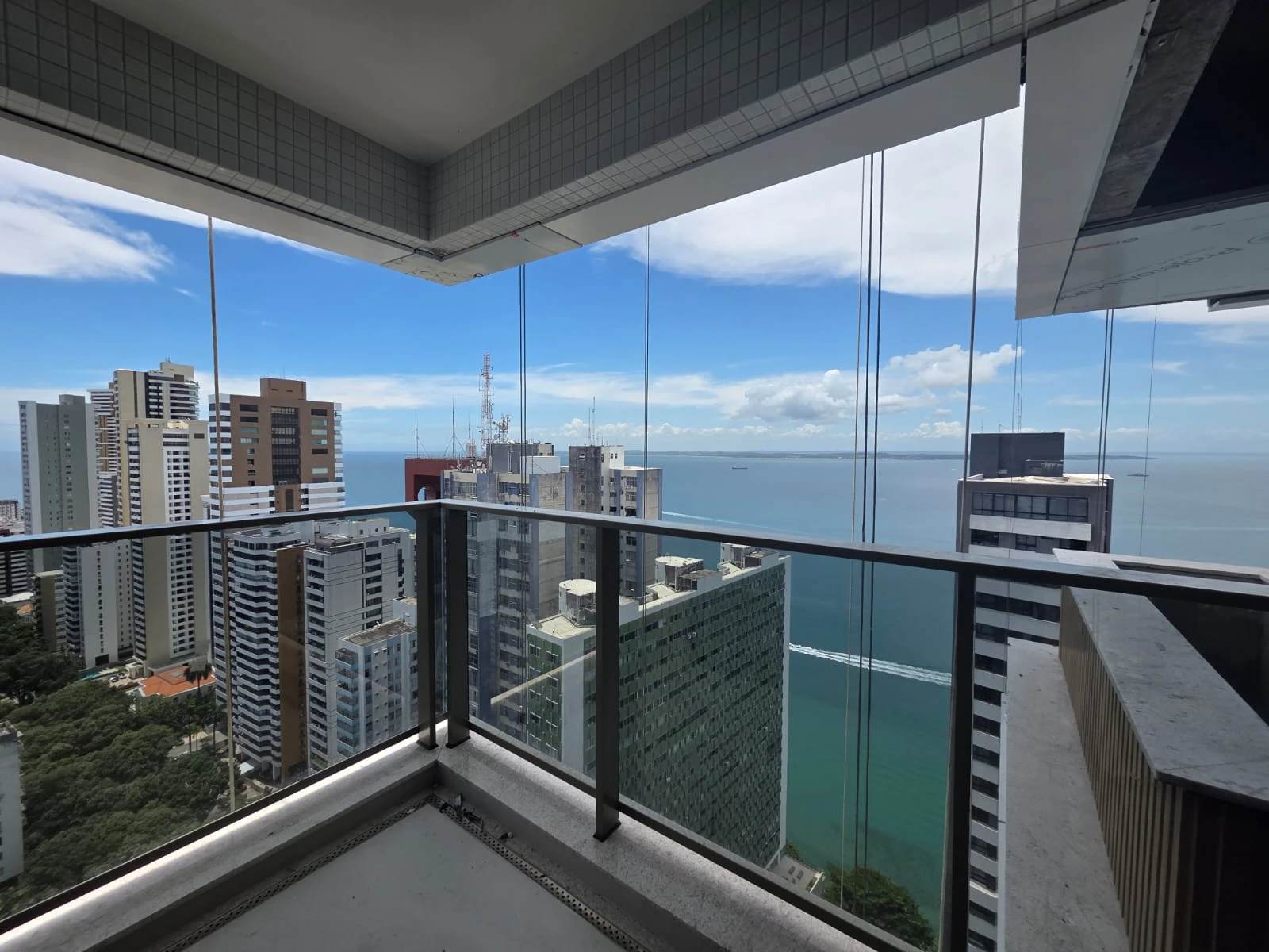 Com 208,52 m² de área privativa, sendo a suíte master com closet e varanda privativa com vista para o mar. A ampla varanda da sala proporciona uma vista deslumbrante para a Baía de Todos os Santos.
