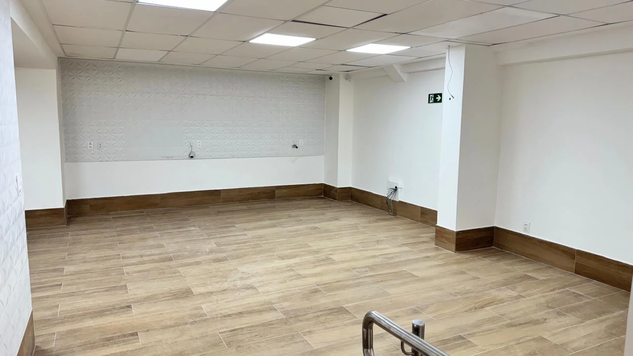 No 1º pavimento há outra recepção, área de convivência externa, 2 salas e 5 salas com banheiro.