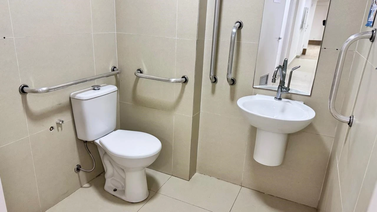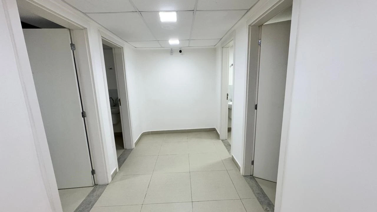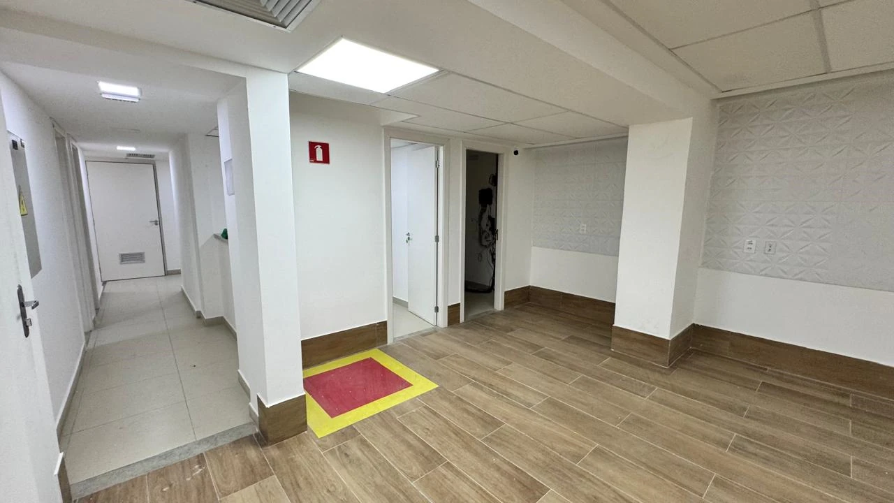 No pavimento térreo além de 2 recepções e uma ampla sala de espera, 4 salas pequenas com lavatório e 1 sala com banheiro e lavatório, depósito, 2 sanitários PNL, lavanderia, copa, sala CPD.