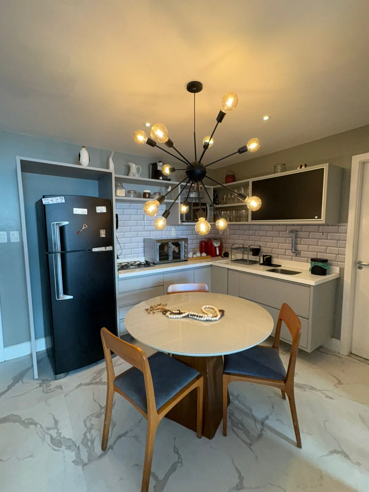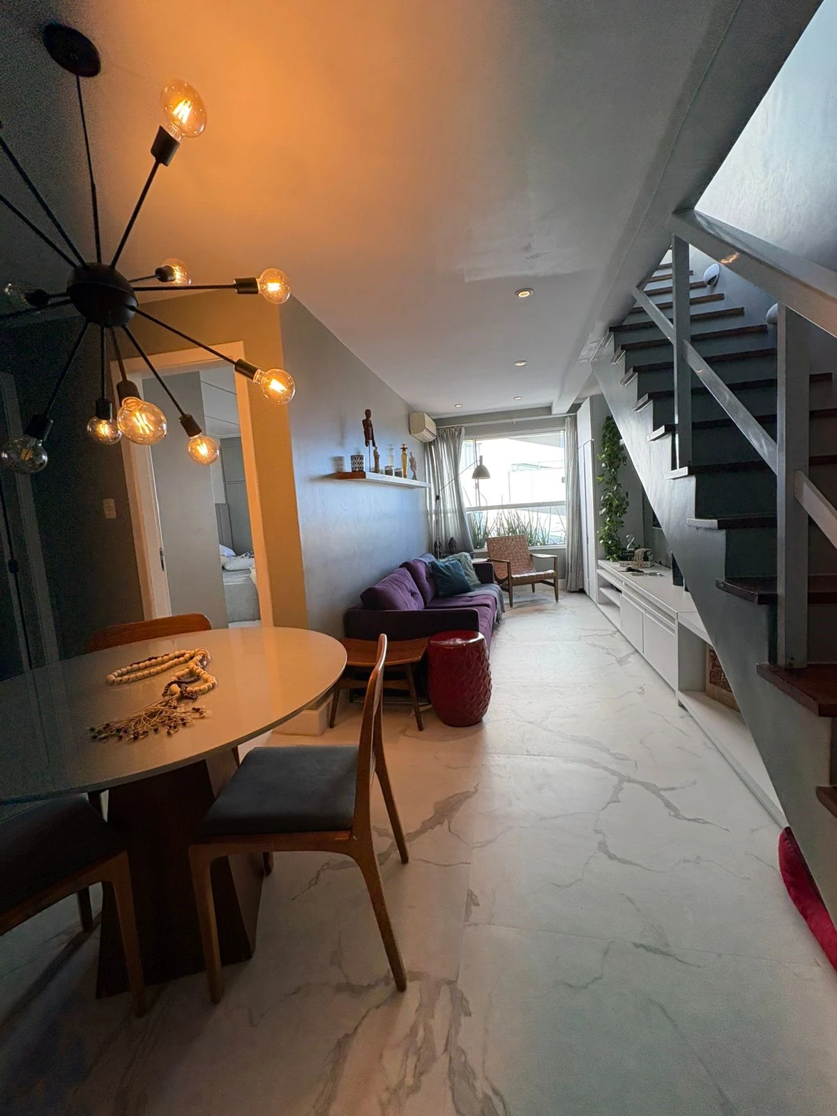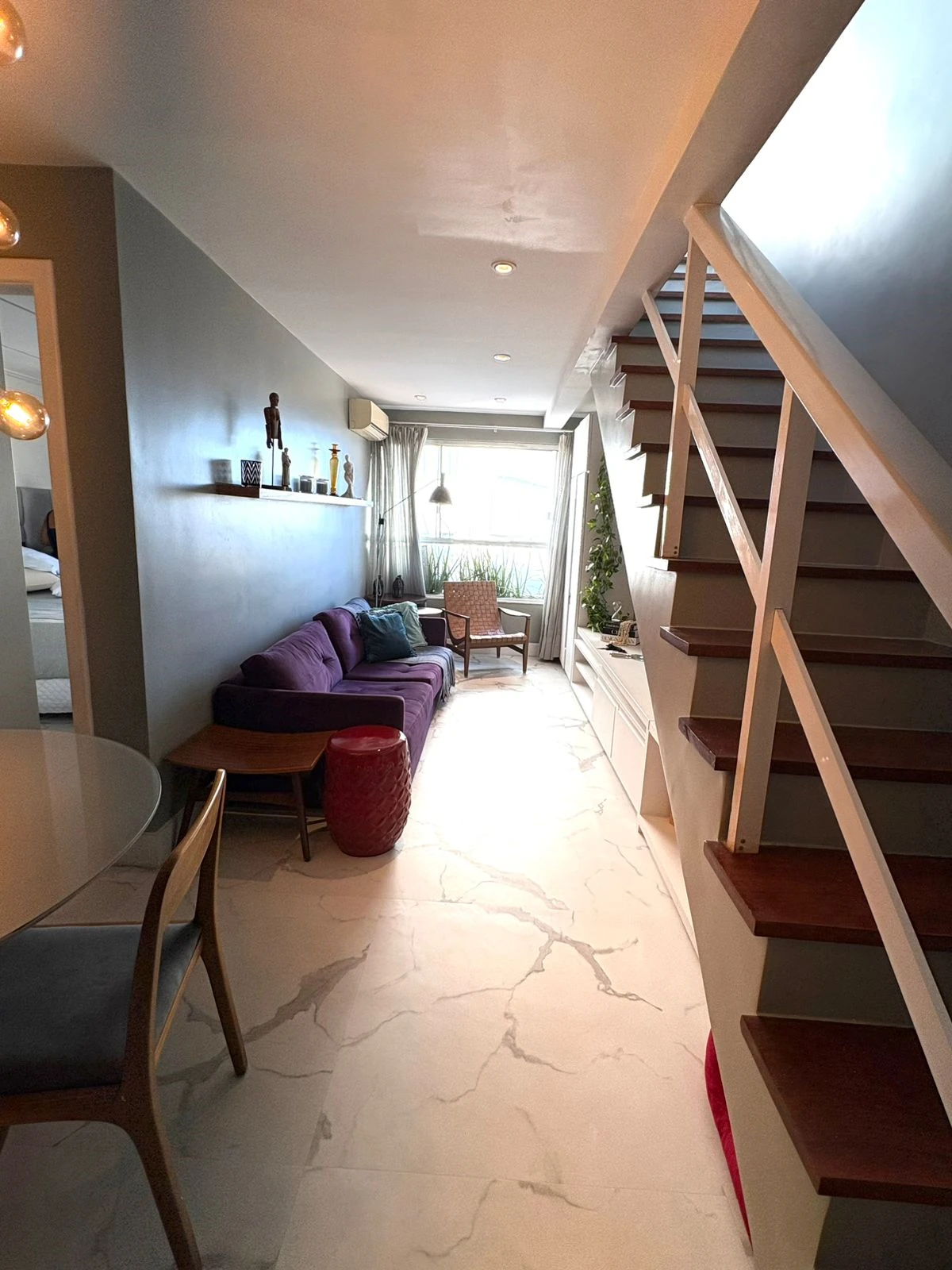 No primeiro pavimento possui um quarto, sala, cozinha americana, banheiro social.