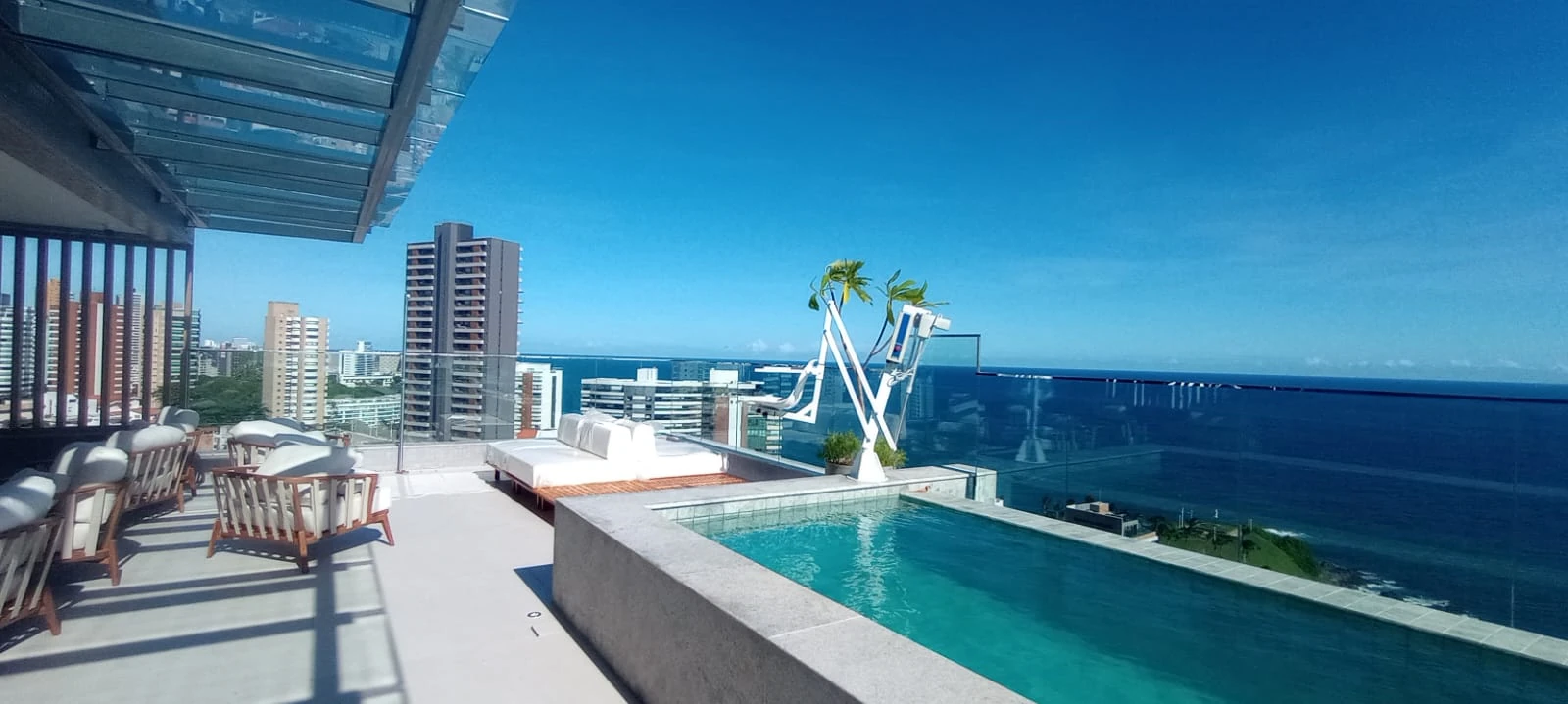 Destaques do Empreendimento: o Barra Signature foi projetado para integrar o morador ao seu mundo com total harmonia e tecnologia. O prédio oferece uma infraestrutura de lazer e serviços incomparável: Rooftop com Vista Mar panorâmica : Piscina climatizada, lounge gourmet e área com parrilla para celebrar a vida com uma vista indescritível. Saúde e Bem-estar: Training Gym completo com Boutique Studio e espaço para Cross Training.