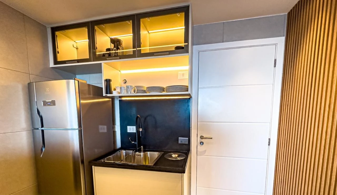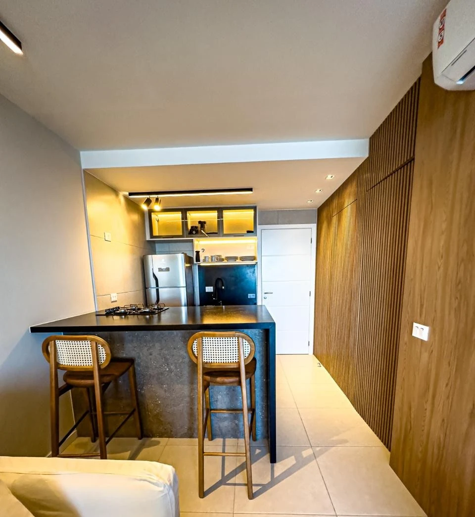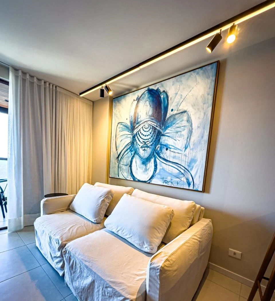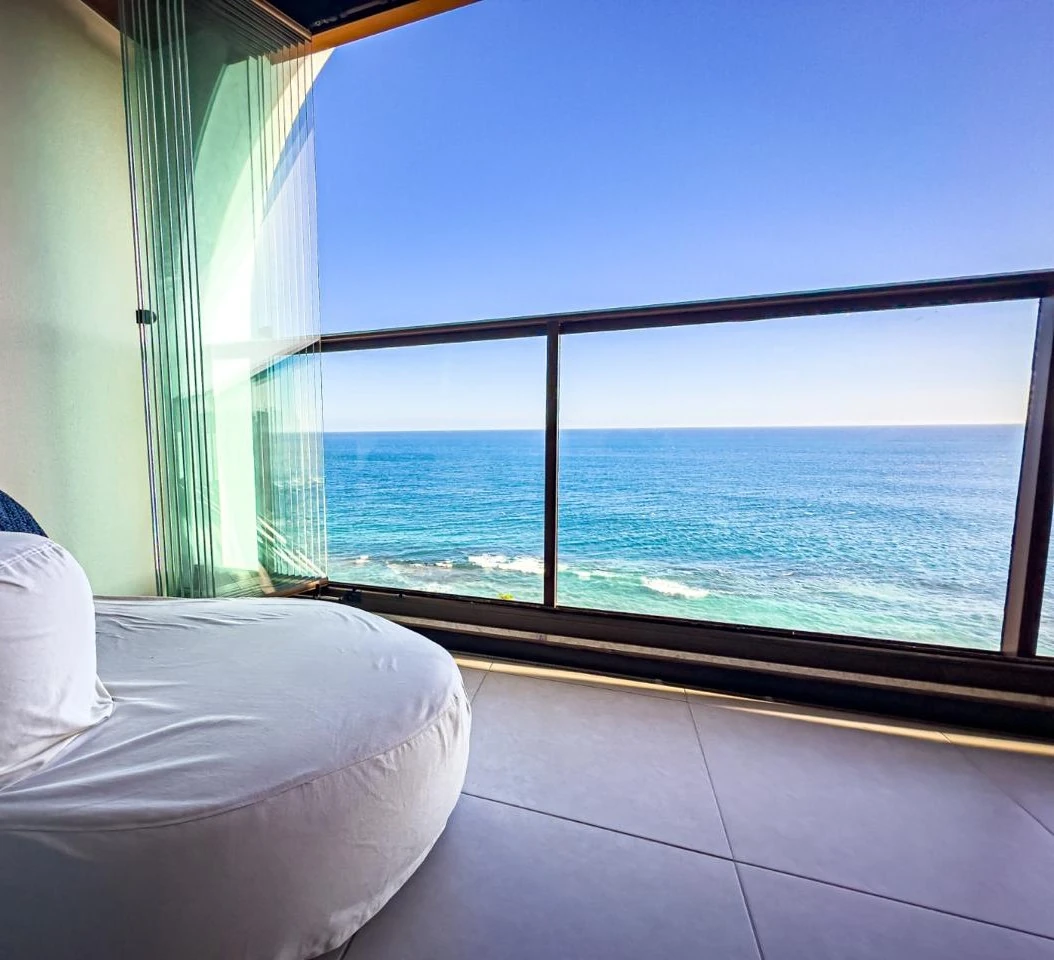 Apartamento quarto e sala à venda no Nau Barra, com vista Mar Frontal, 44m². O imóvel conta com uma suíte aconchegante, sala integrada à varanda com vista panorâmica para o mar e cozinha planejada. Todos os ambientes possuem armários de alto padrão. Para sua total comodidade, o apartamento dispõe de uma vaga de garagem fixa.