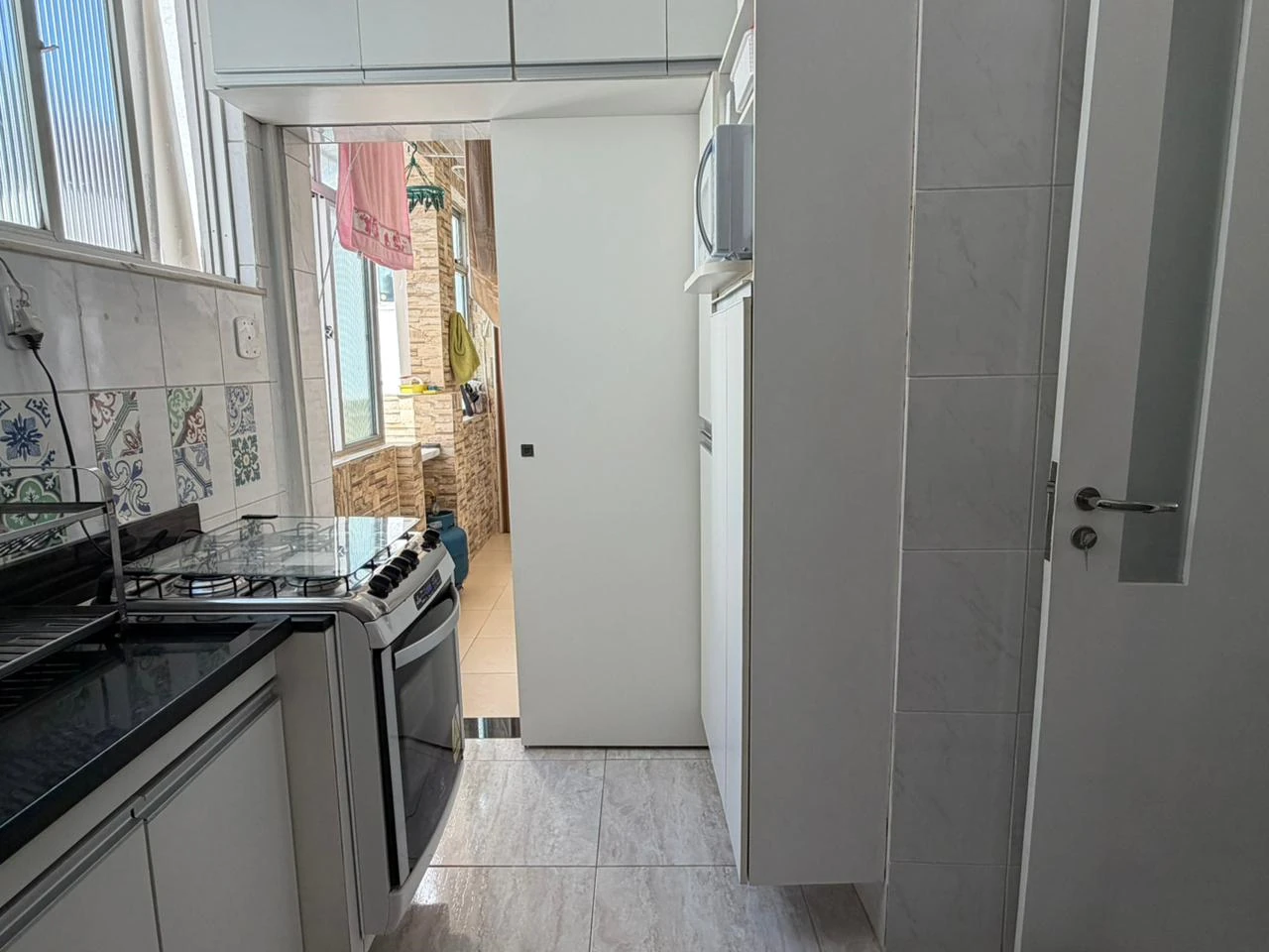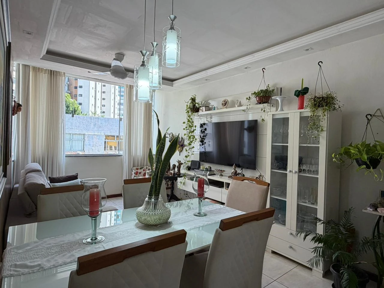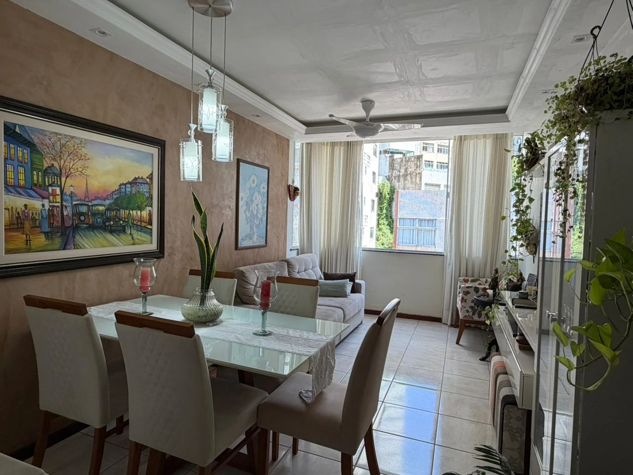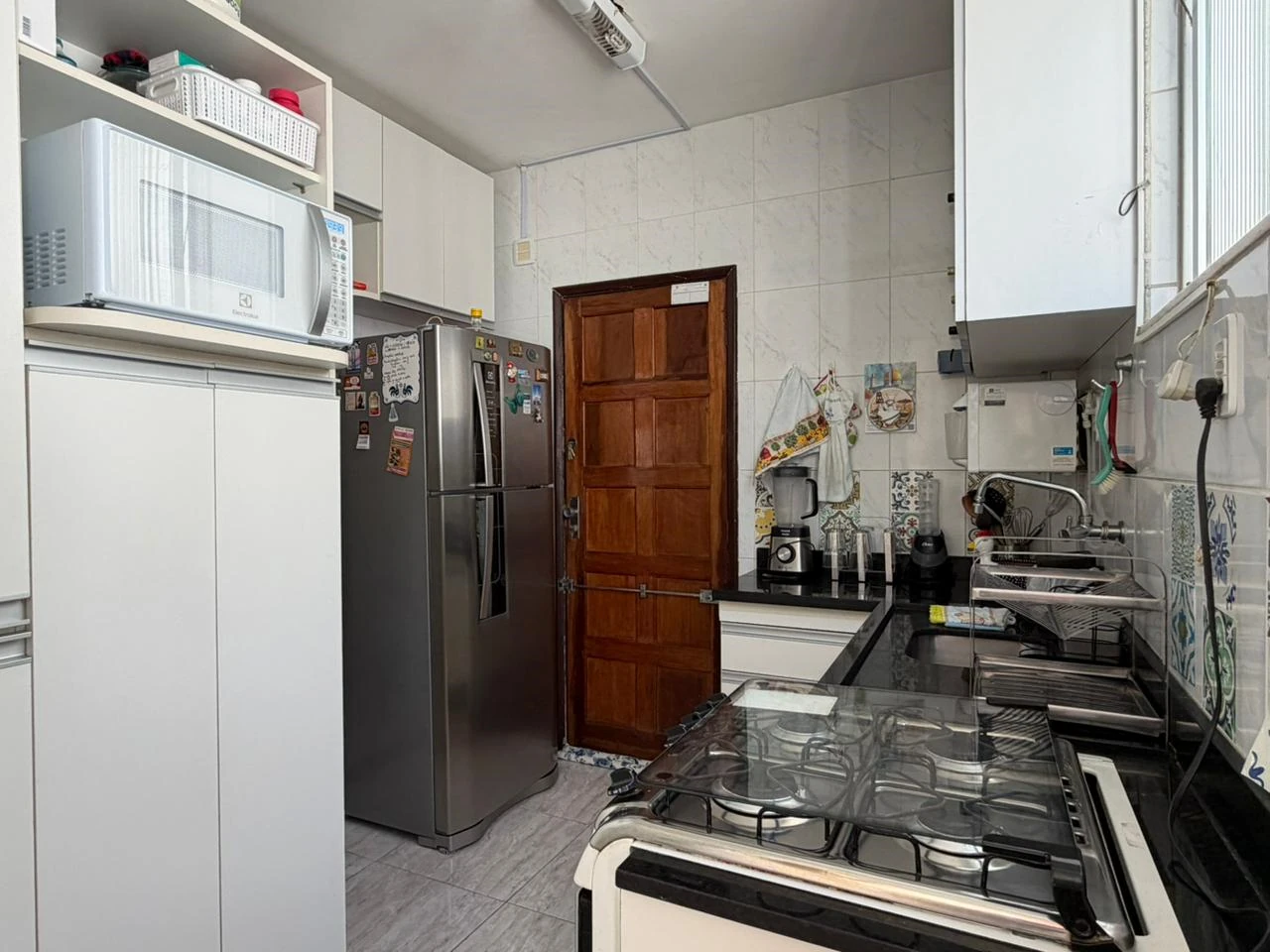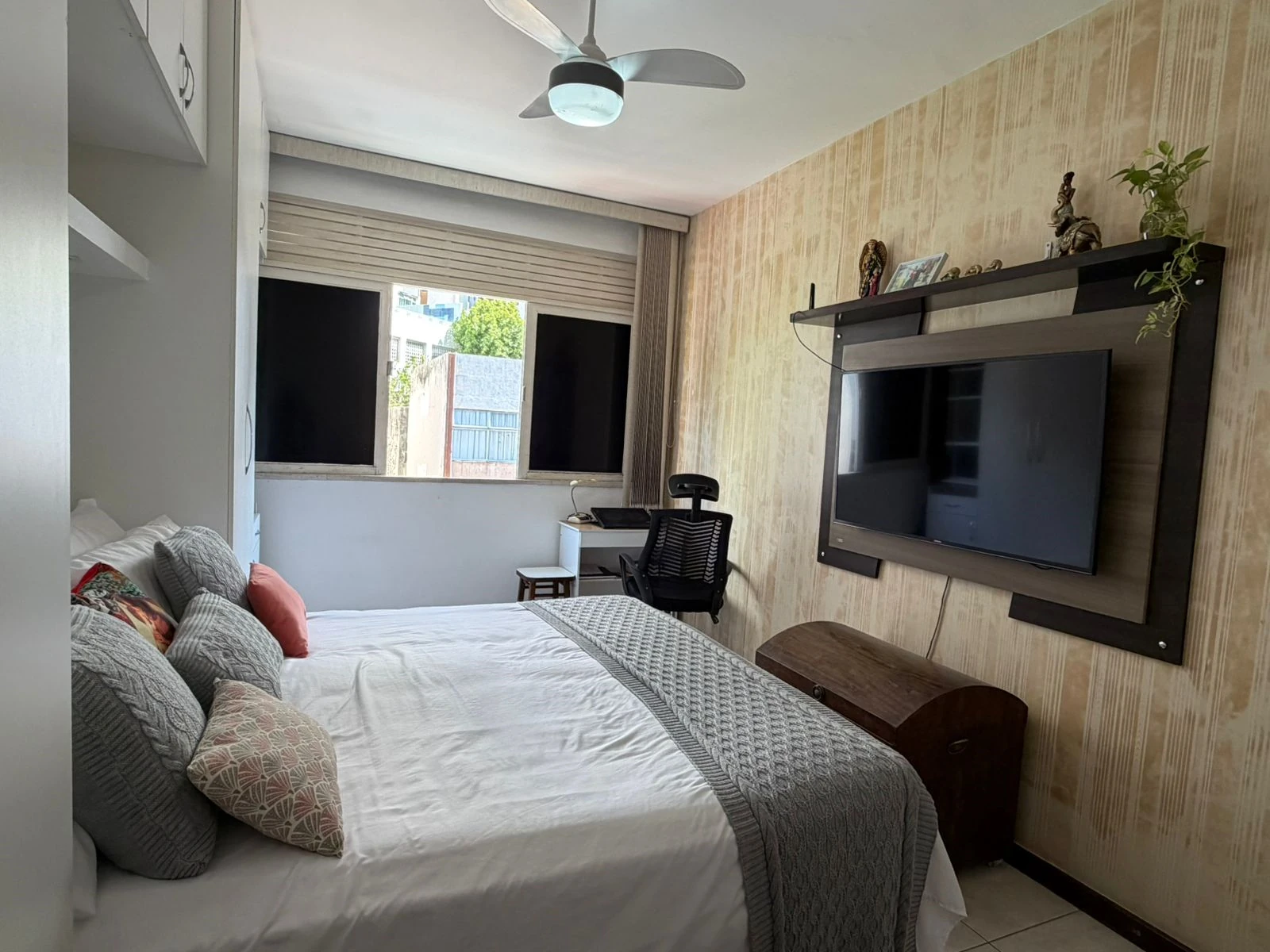 Apartamento à venda na Barra, 76m² com dois quartos, sendo 1 suíte, sala, banheiro social, cozinha funcional integrada a área de serviço.