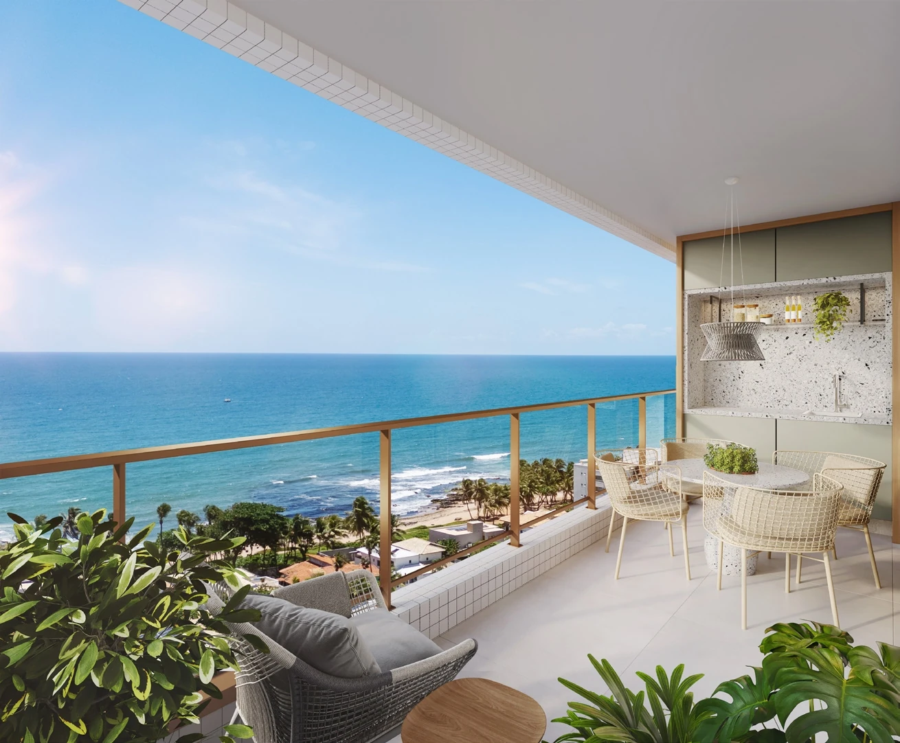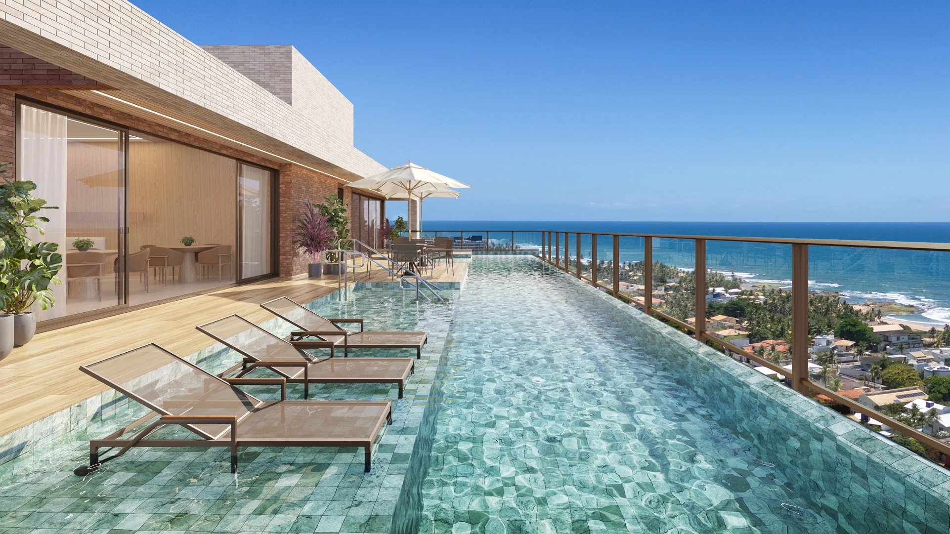 Com um rooftop projetado para impressionar, Ilha de Lanai oferece piscina com borda infinita, deck molhado e prainha, espaço gourmet integrado ao deck com vista para o oceano, salão de festas, academia completa e coworking com sala de reunião. Cada um desses espaços foi concebido para transformar a rotina em uma experiência de bem-estar contínuo, com o mar sempre ao fundo.