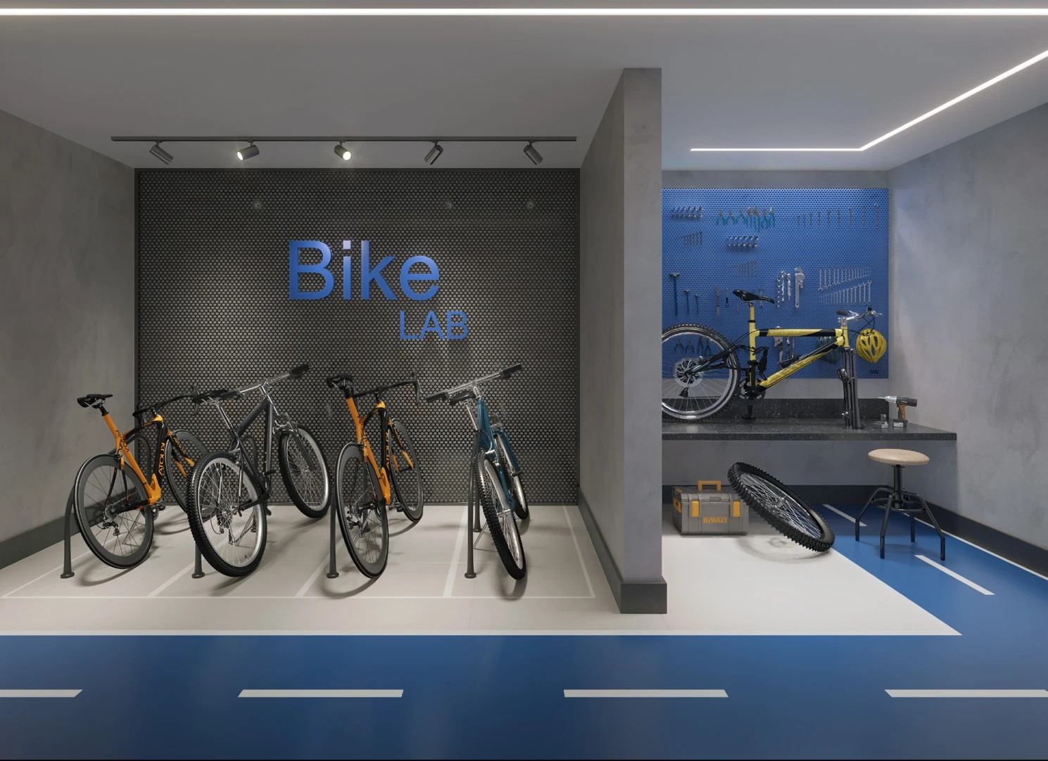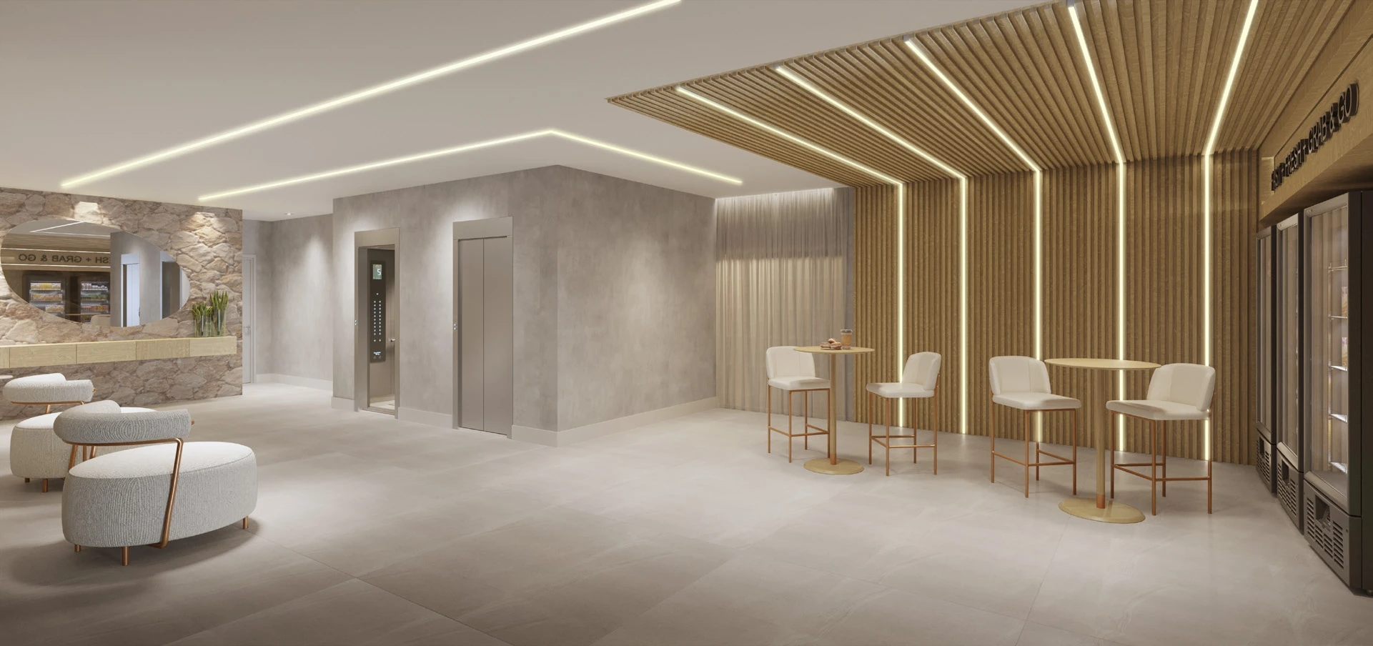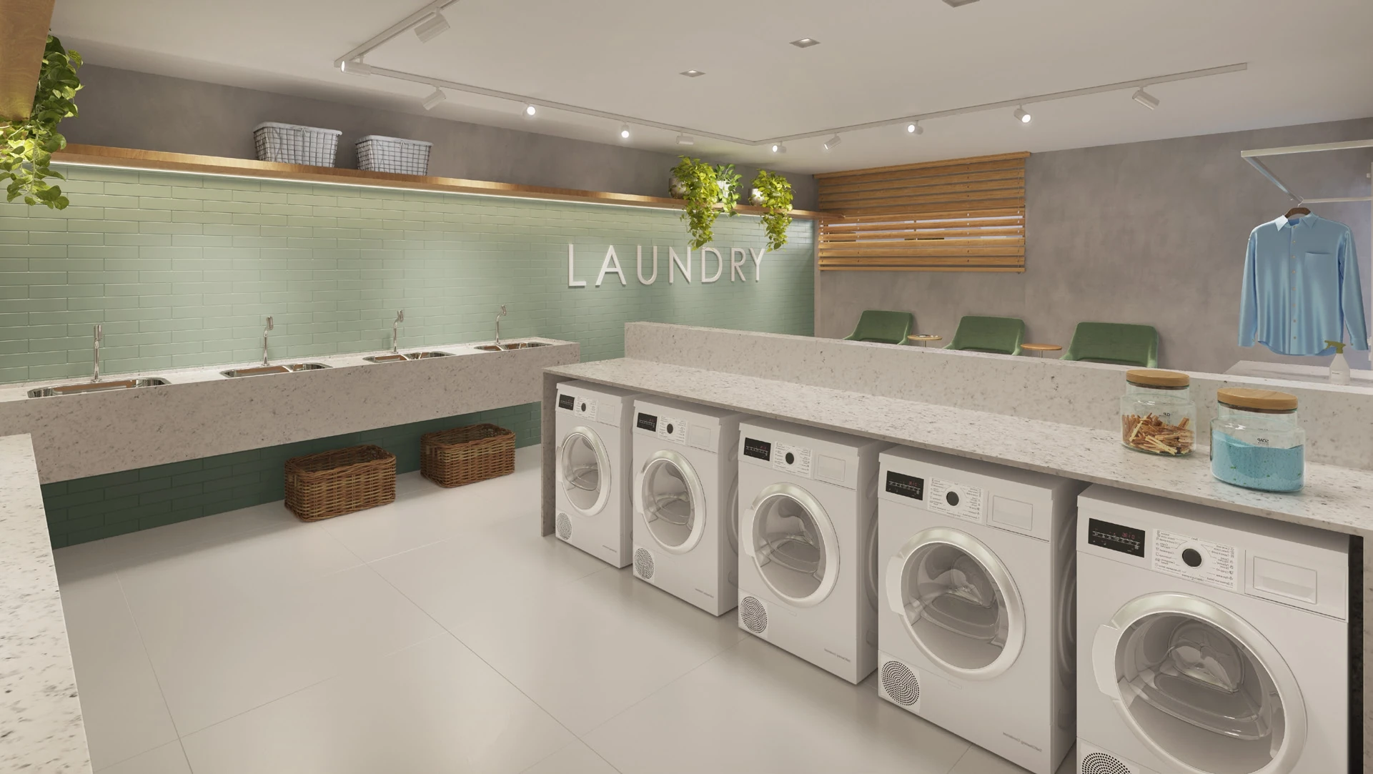 Além do rooftop, o projeto contempla no térreo um lobby sofisticado com espaço de conveniência Grab & Go, pet place com pet care, bicicletário com bike lab, prancharia para surfistas, lavanderia equipada e duas lojas com fachada para a rua, compondo um street mall que agrega comodidade para os moradores e oportunidade de investimento comercial. Guarita de segurança, espaço delivery com clausura, gerador, medidor de água individual, Wi-Fi nas áreas comuns e tratamento termoacústico completam a infraestrutura.