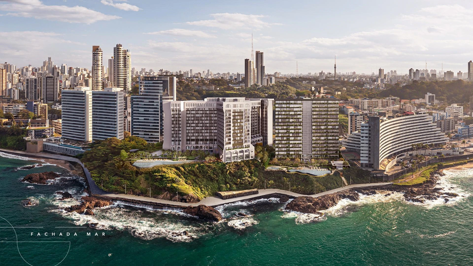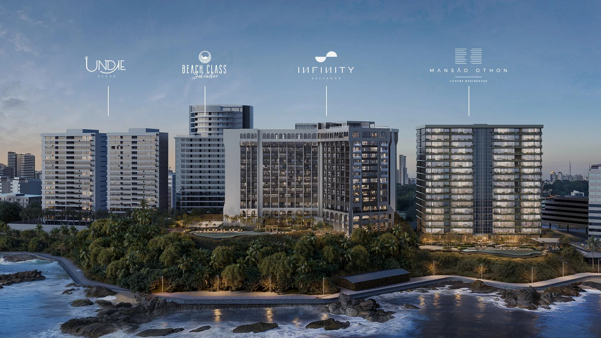 Situada na orla de Ondina, com vista permanente para o mar de Salvador, Infinity Salvador representa uma das transformações urbanas mais significativas do Nordeste brasileiro. Desenvolvido pela Moura Dubeux sobre o terreno do histórico Salvador Othon Palace, inaugurado em 1975, o projeto preserva a memória arquitetônica do local enquanto entrega um complexo contemporâneo de alto padrão que une moradia, hotelaria e negócios em um único endereço.