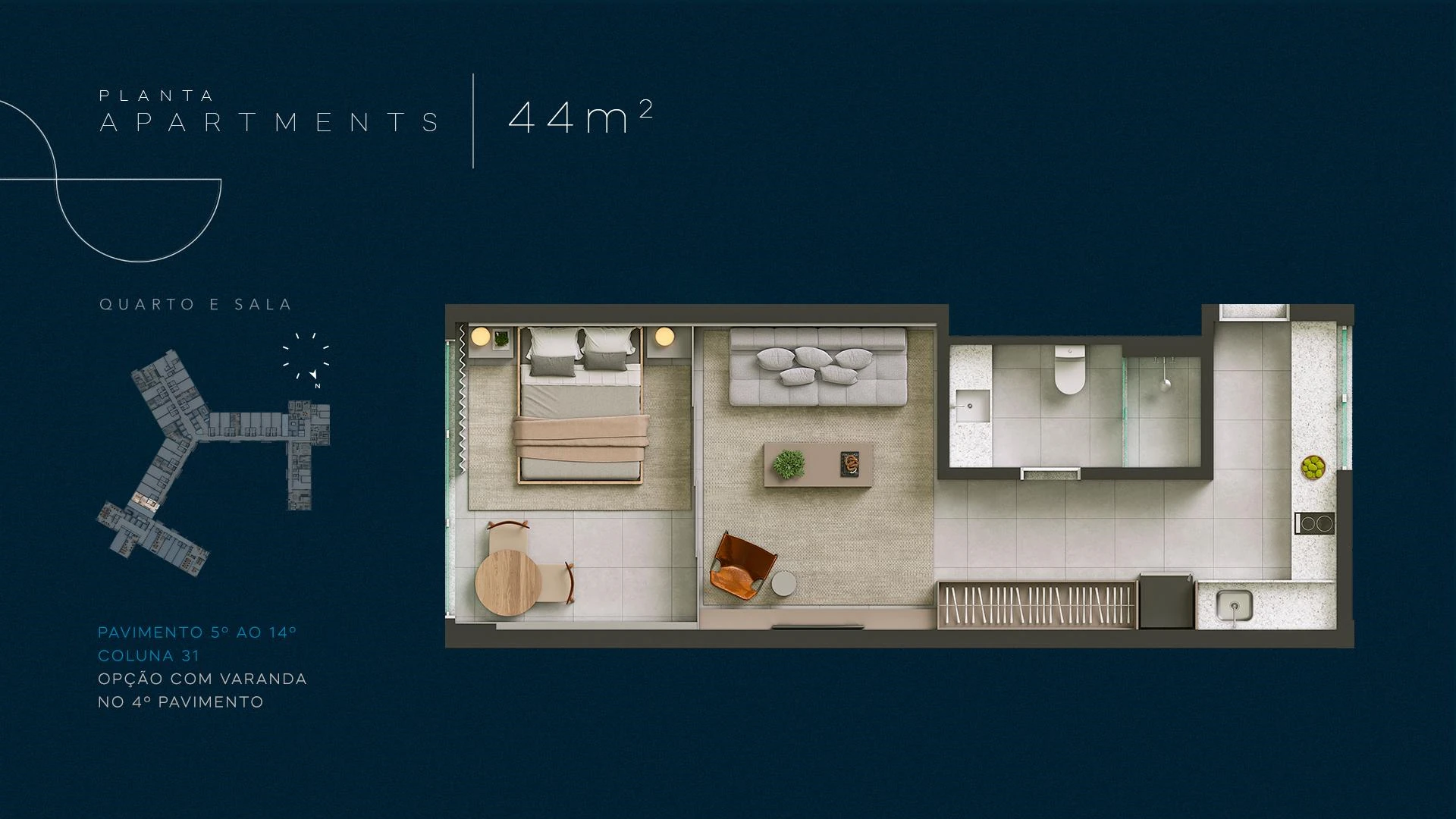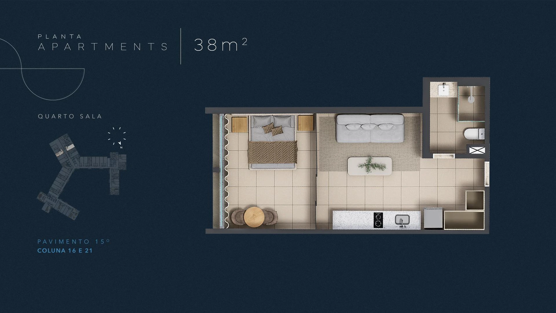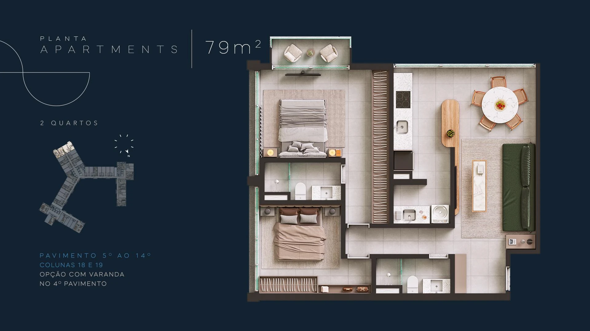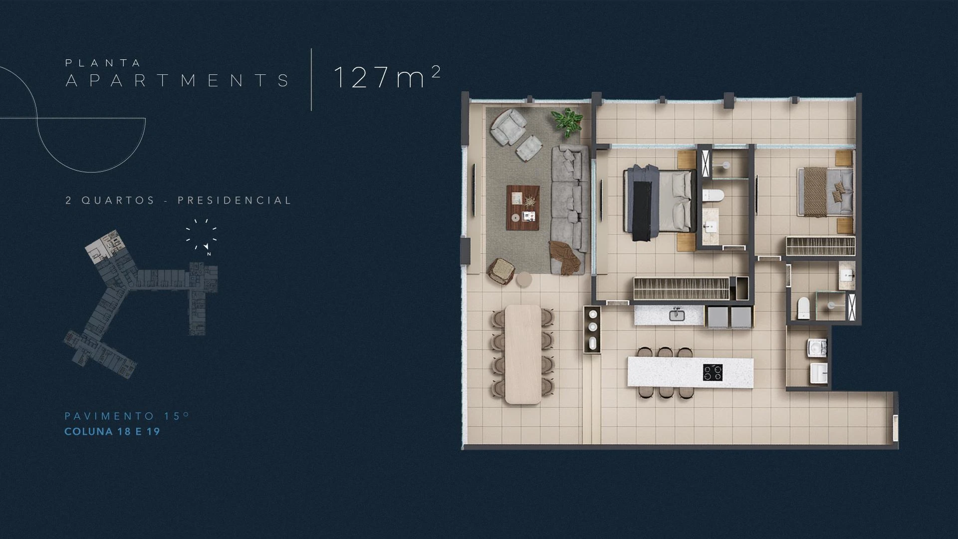 Infinity Residences apresenta unidades a partir de 58 m² com dois quartos, distribuídas do 3º ao 15º pavimento, ideais para moradia permanente com toda a infraestrutura condominial de um hotel de luxo. Com projeto assinado e materiais de primeira linha, cada apartamento foi concebido para entregar conforto real no cotidiano à beira-mar.