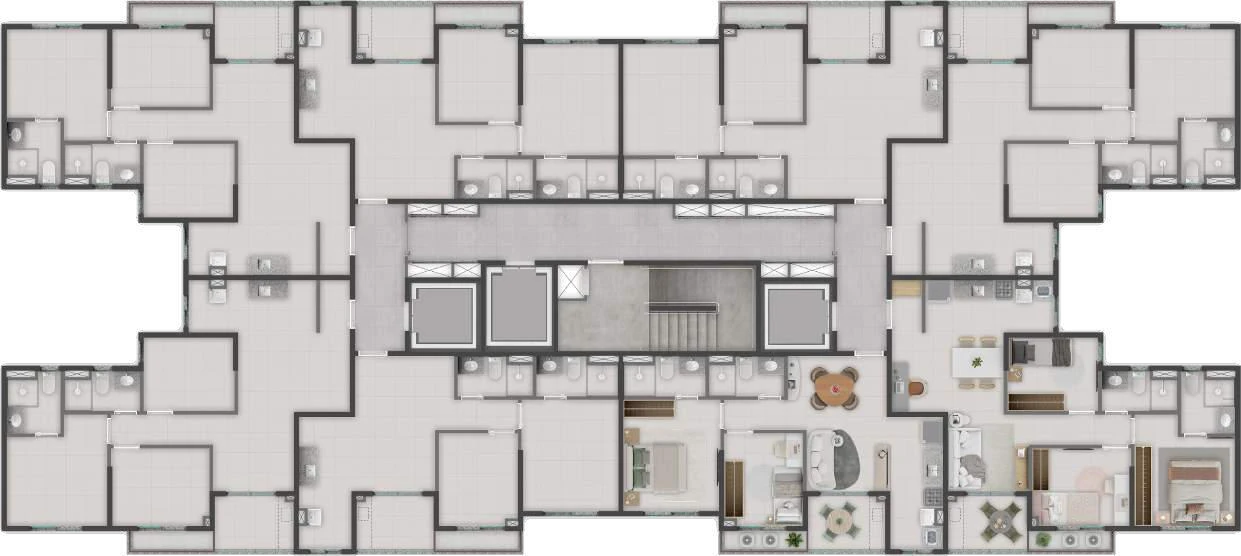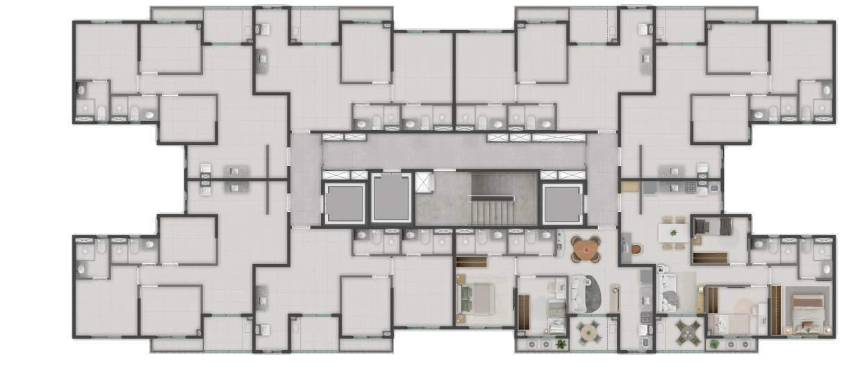 Pensado para o morador moderno, o clube interno ainda conta com academia climatizada, decorada e equipada, lavanderia coletiva, coworking, gourmet interno, mini market, salão de jogos, brinquedoteca e pet care. Todos os ambientes fechados são climatizados e entregues equipados, o que elimina custos adicionais de implantação para o condomínio.