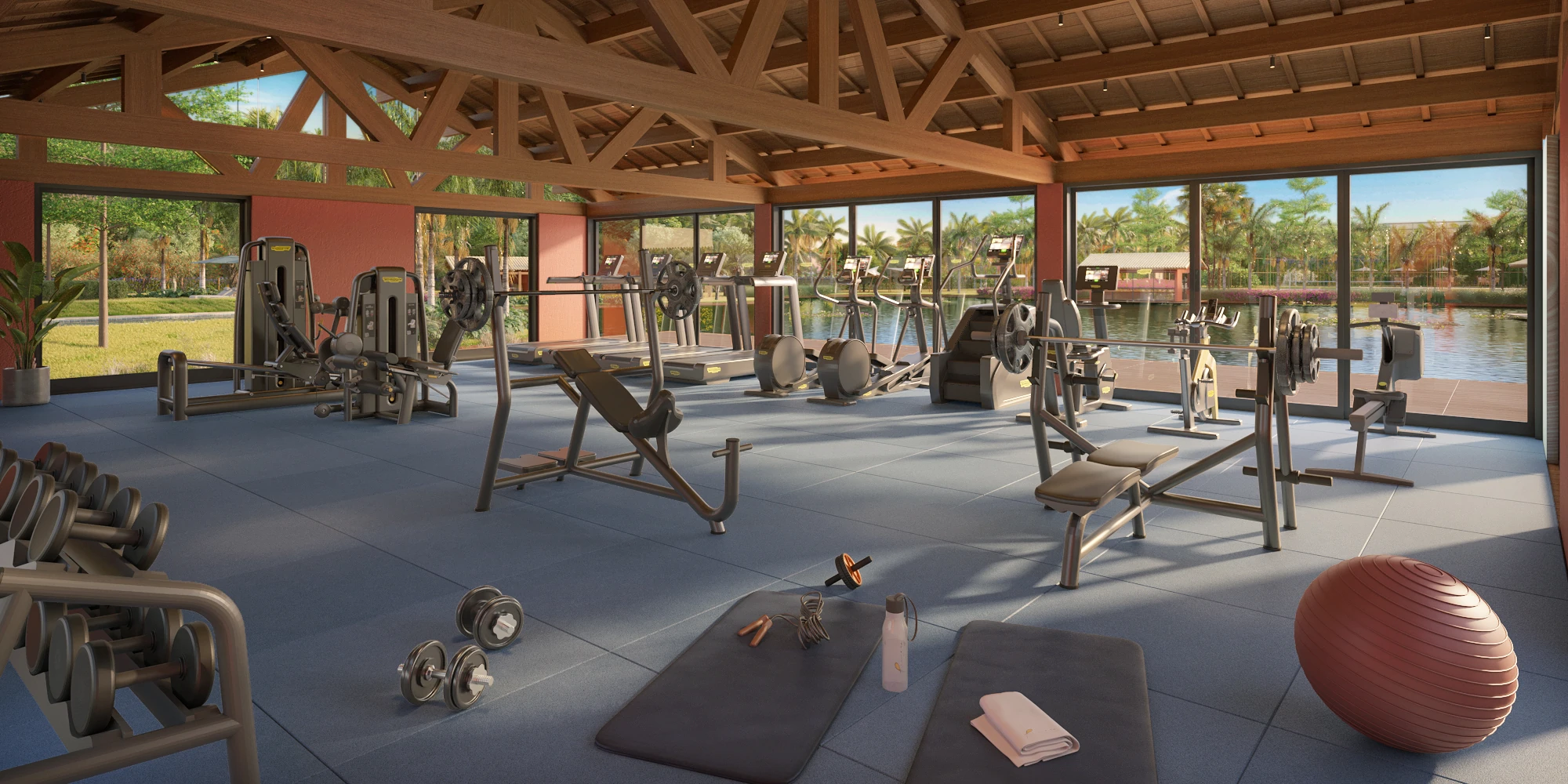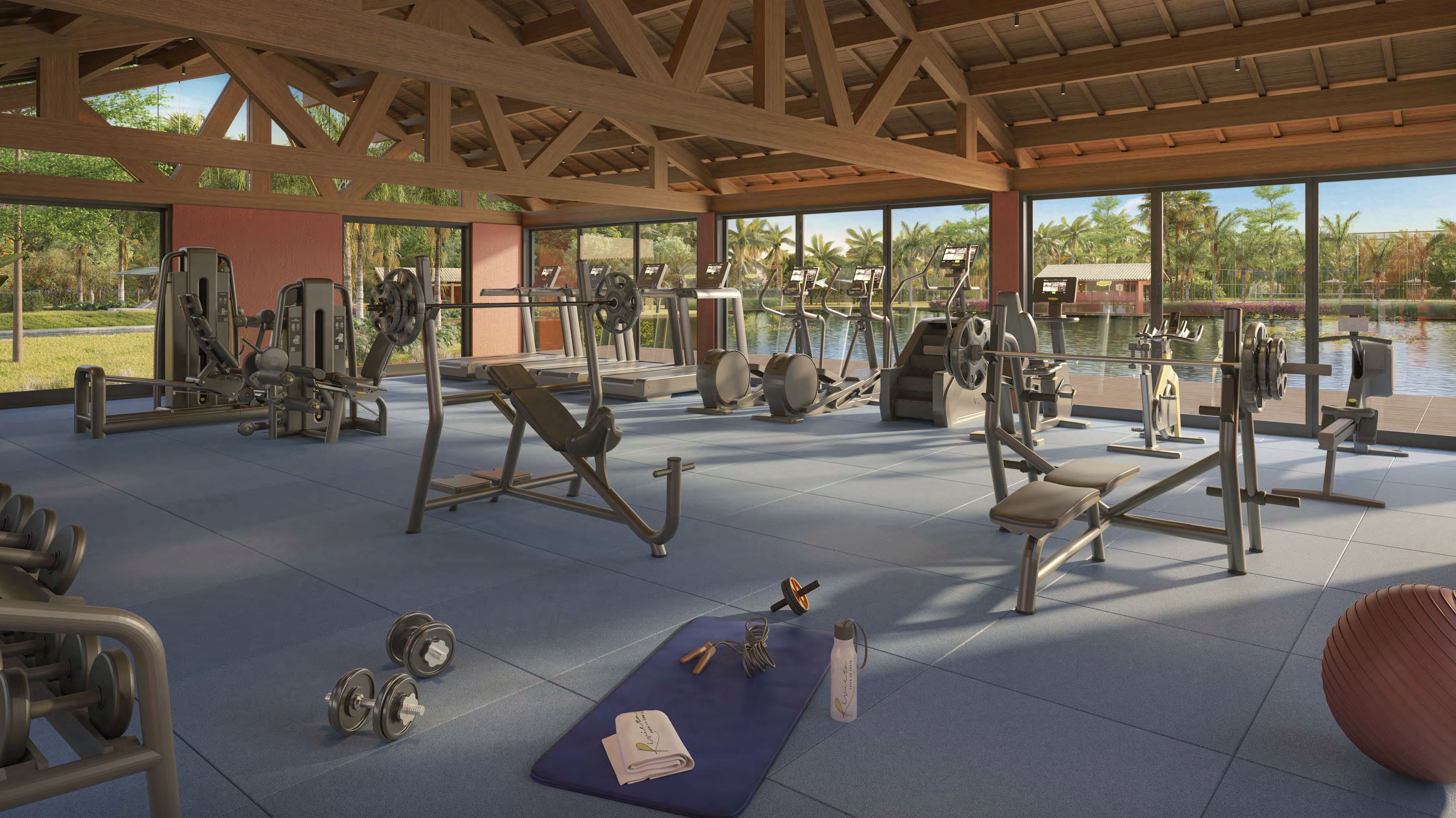 Além das quatro piscinas, incluindo uma com borda infinita e Espaço Gourmet integrado com vista para a lagoa, uma piscina com raia de 25 metros e piscinas adulto e infantil, o clube conta com uma academia flutuante sobre a lagoa, arquitetada sobre deck de madeira com vistas panorâmicas para a natureza ao redor.