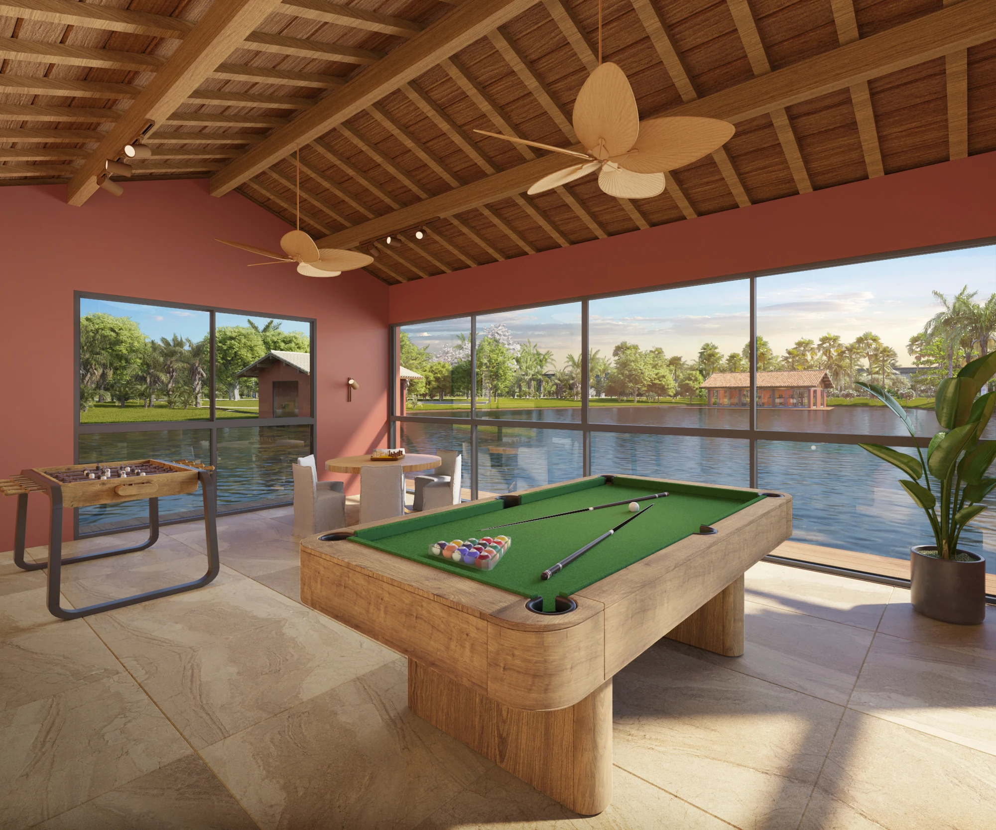 Com projeto arquitetônico assinado por Alberto Bolzico, interiores por Mariana Leão e paisagismo pela renomada Parnaso Jardim, o Clube Riviera é o coração do empreendimento. Integrado a uma charmosa lagoa natural, o clube reúne uma estrutura de lazer raramente vista em condomínios de lotes: